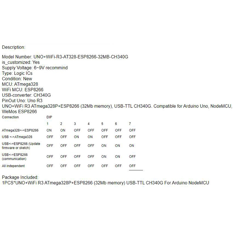UNO+WiFi R3 ATmega328P+ESP8266 (32Mb Memory), USB-TTL CH340G. Compatible for Arduino Uno, NodeMCU, WeMos ESP8266