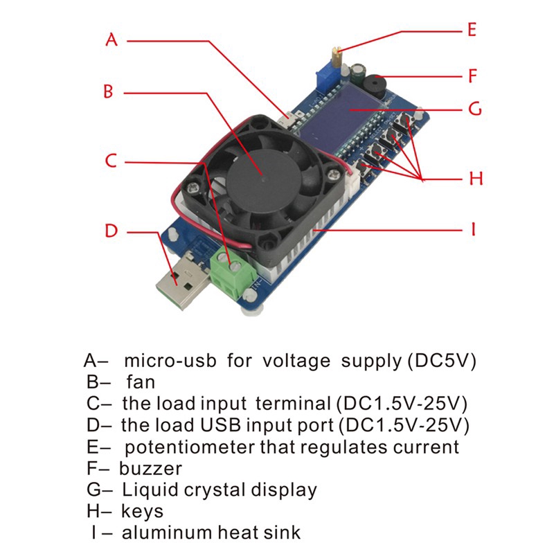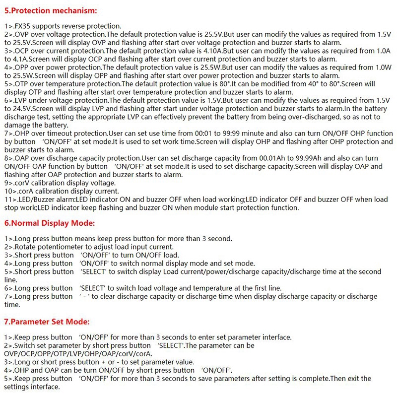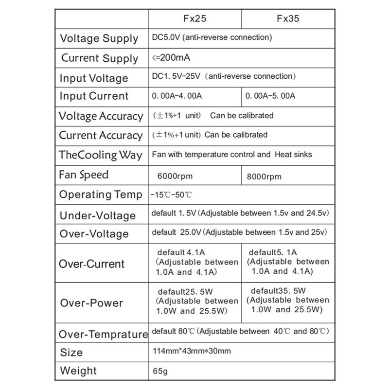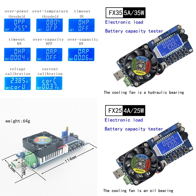 FX25/FX35 25W 35W 4A/5A Battery Capacity Tester Constant Current Electronic Load USB Tester