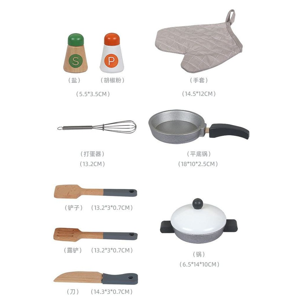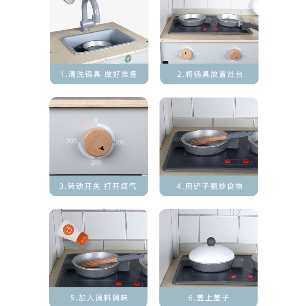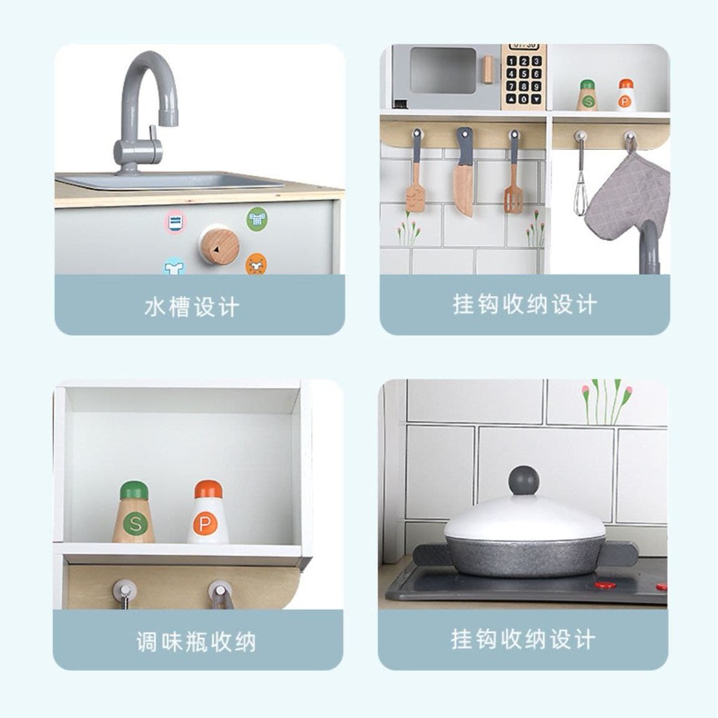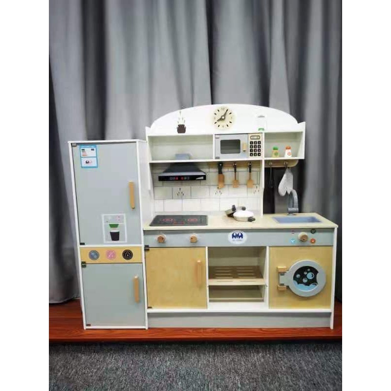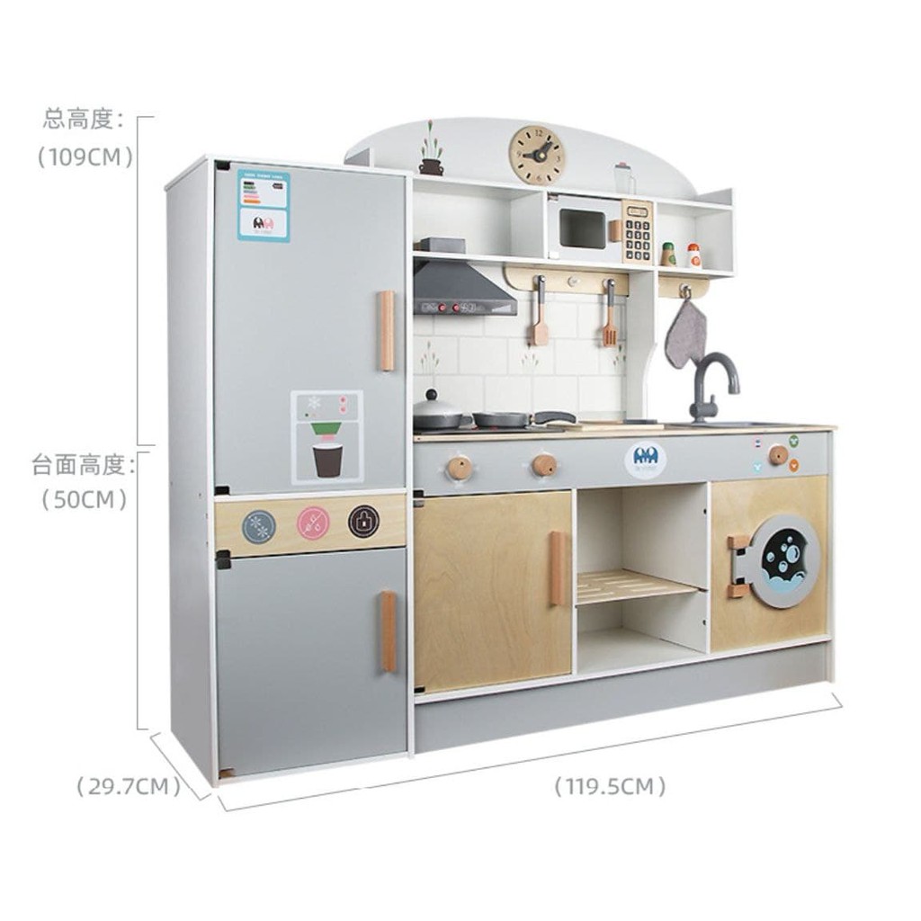 BYJ Wooden Gray Kitchen with Ref 104cm Height Pretend Play Set for Kids Wooden Cooking Set