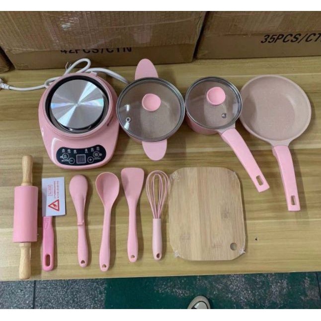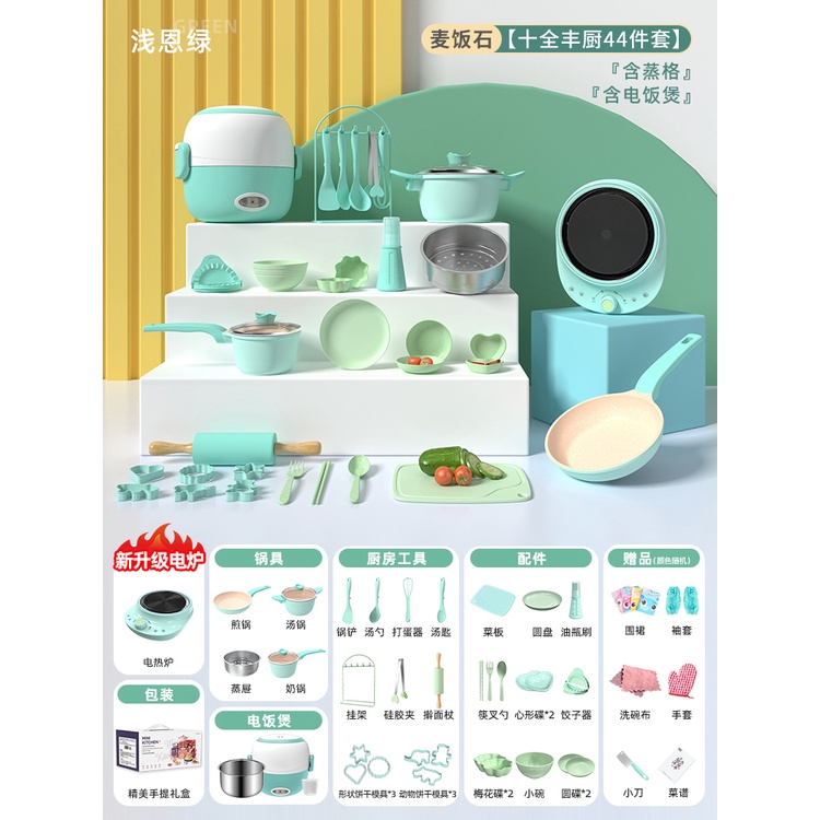 BYJ Real Cooking Set for Kids FREE Apron Kitchen Utensils Pretend Play Set for Kids Non Stick Pan