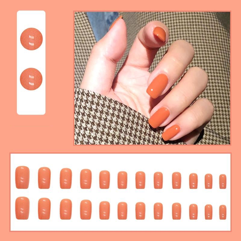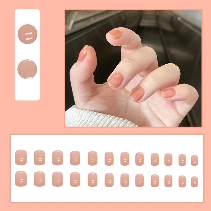 【Glue + Jelly Glue】24Pcs Fake Nails Set With Glue Design DIY French Finger Nail Art Fasle nail COD