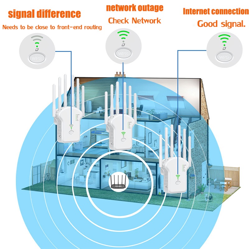 1200Mbps Wireless WiFi Repeater Wifi Signal Booster Dual-Band 2.4G 5G WiFi Extender 802.11ac Gigabit