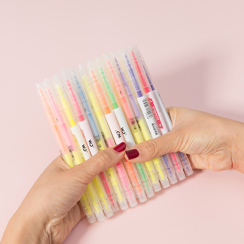 imoda 6pcs/bag Double-Headed Highlighter Pen School Office Supplies Cute Stationery