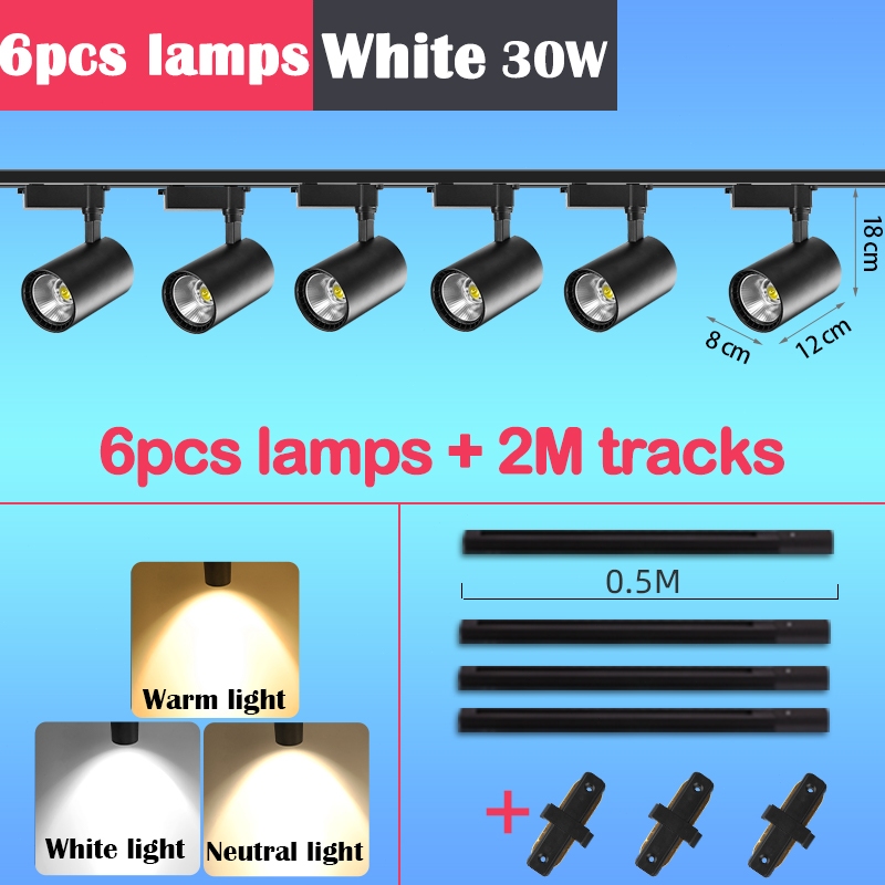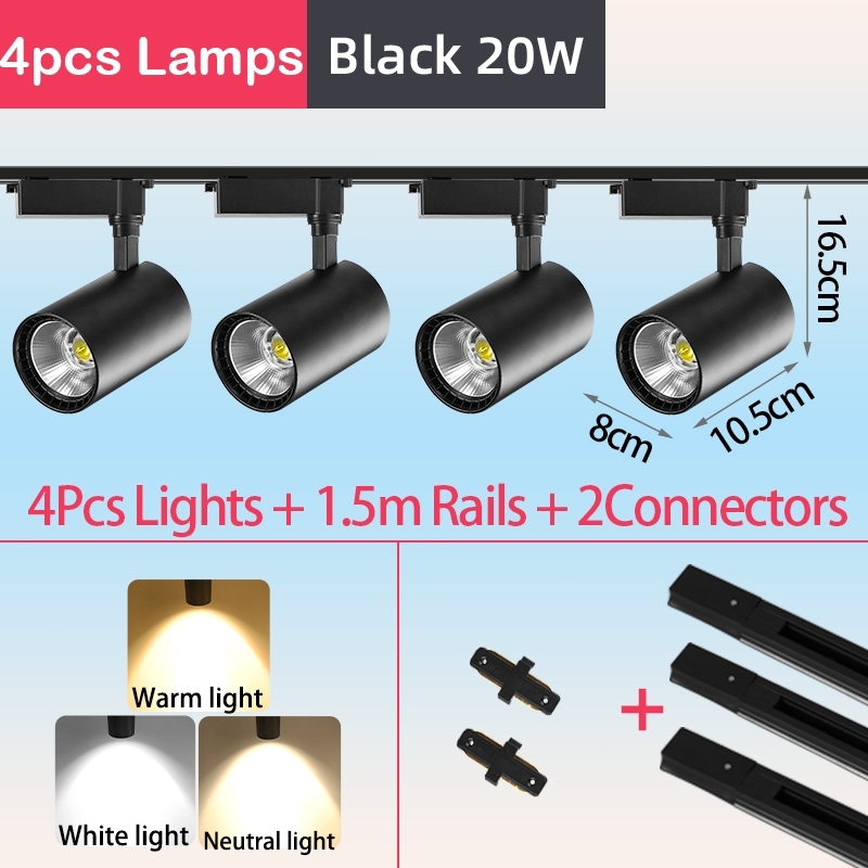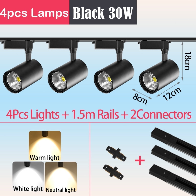 3/4/6PCS LED Track Light Set 12/20/30/40/50W COB Spotlight Ceiling Light 220V Spot Light Track light for ceiling Home Lighting Living Room Bedroom Store Lighting Free Rails