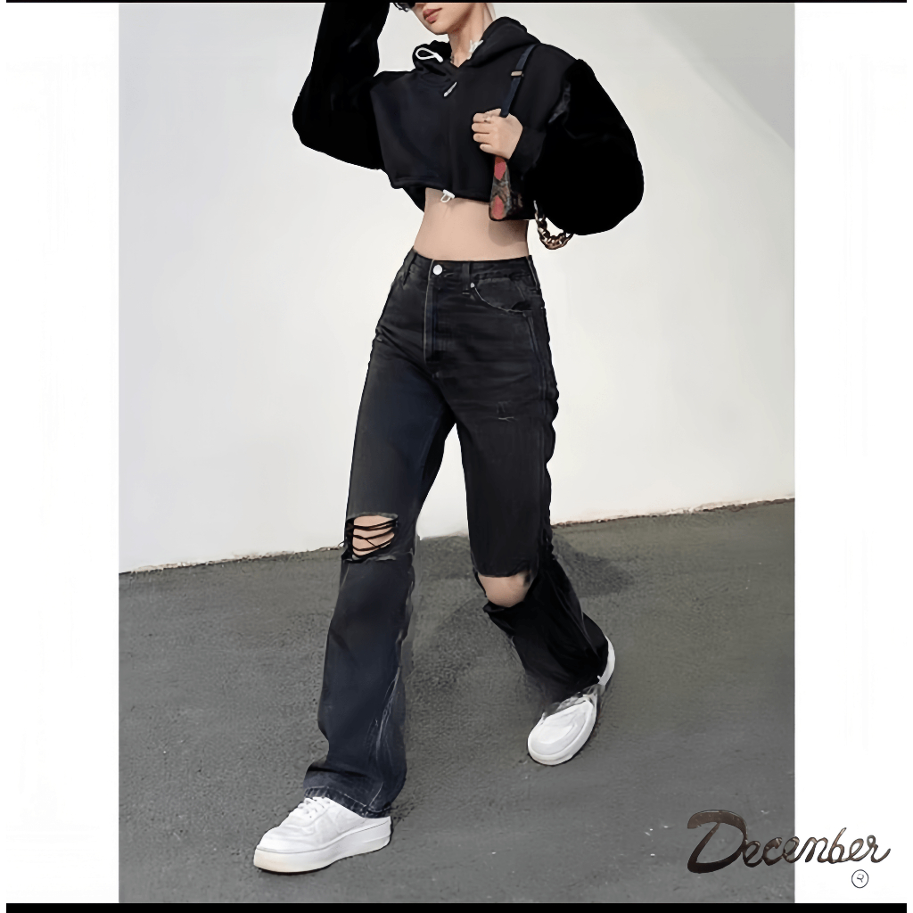 High Waist Tattered Jeans Stylish Fashionable Design For Women