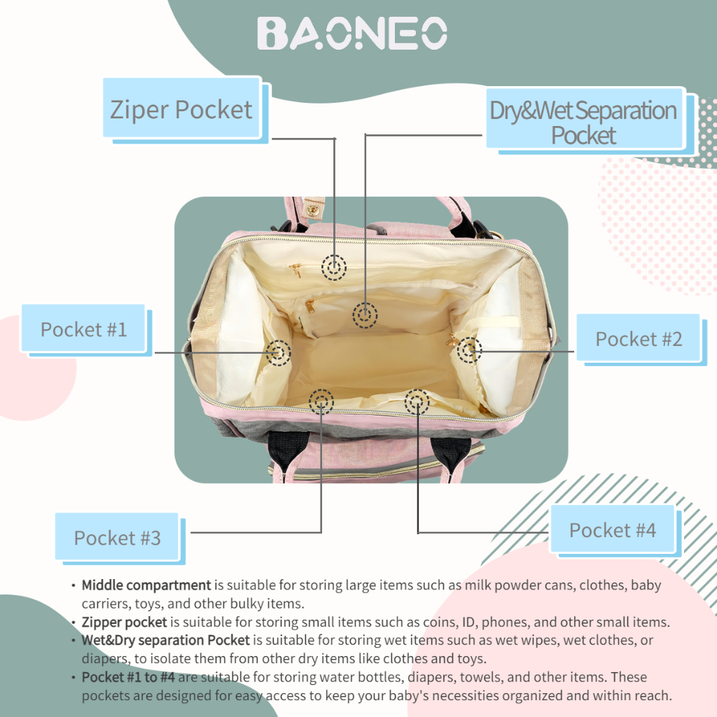 BAONEO Mommy Maternity Nappy Diaper Bag Baby Travel Bag