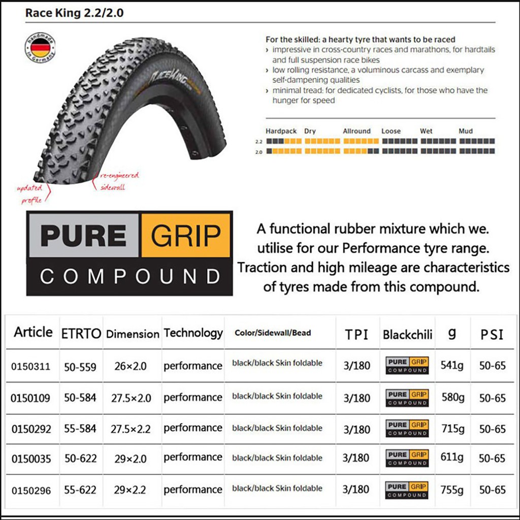 Continental MTB Mountain Bike Tires for mounting bicycles MTB RACE KING size 26x2.0 27.5x2.0 29x2.0 bicycle parts