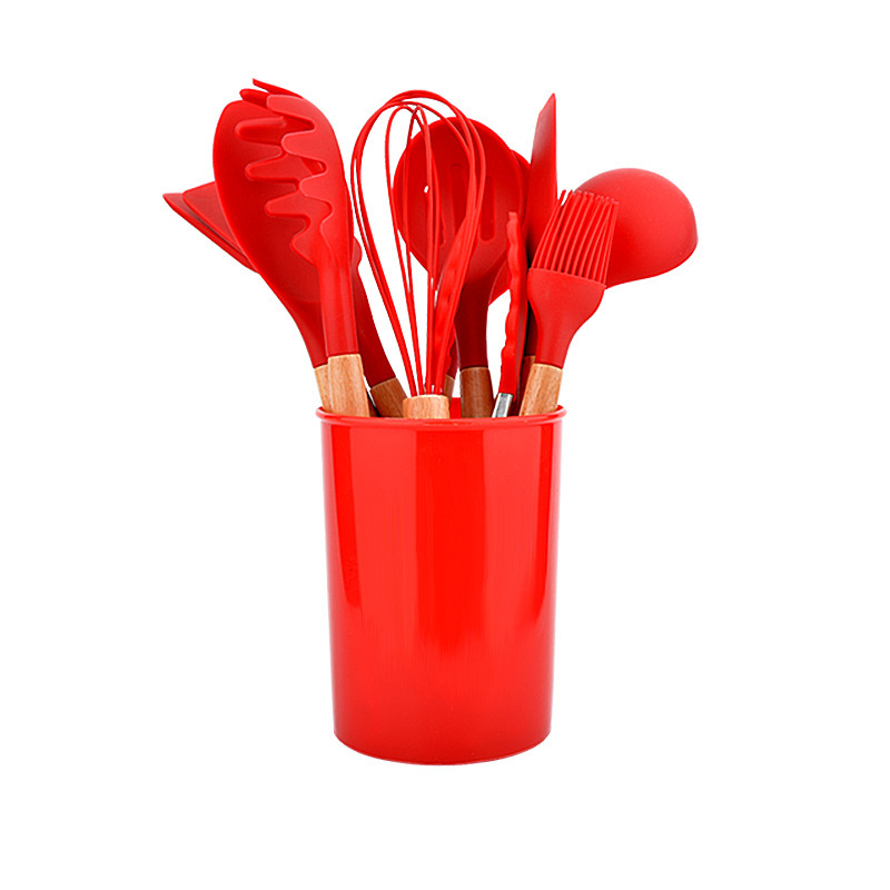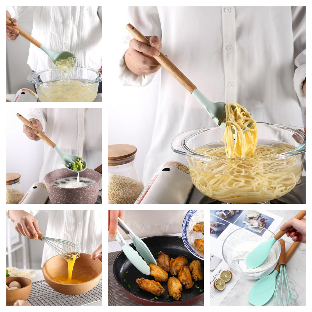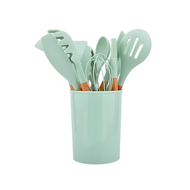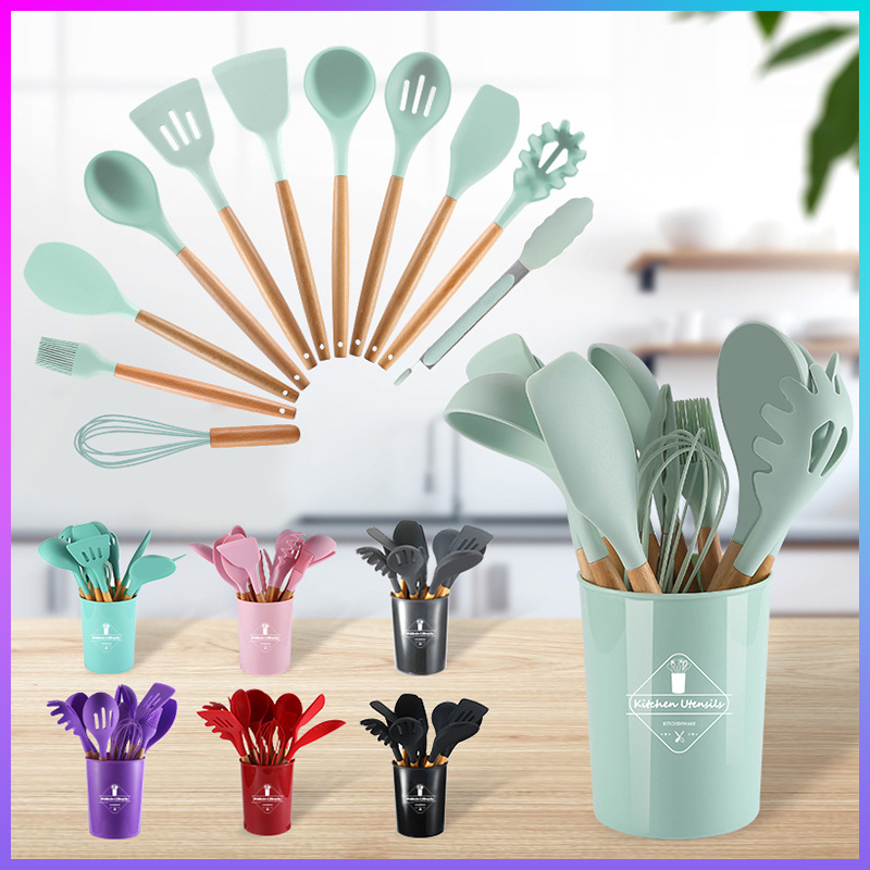 12 Pcs Silicone Kitchen Utensil Set Cookware Set Non-Stick Wooden Handle Kitchen Tools Set