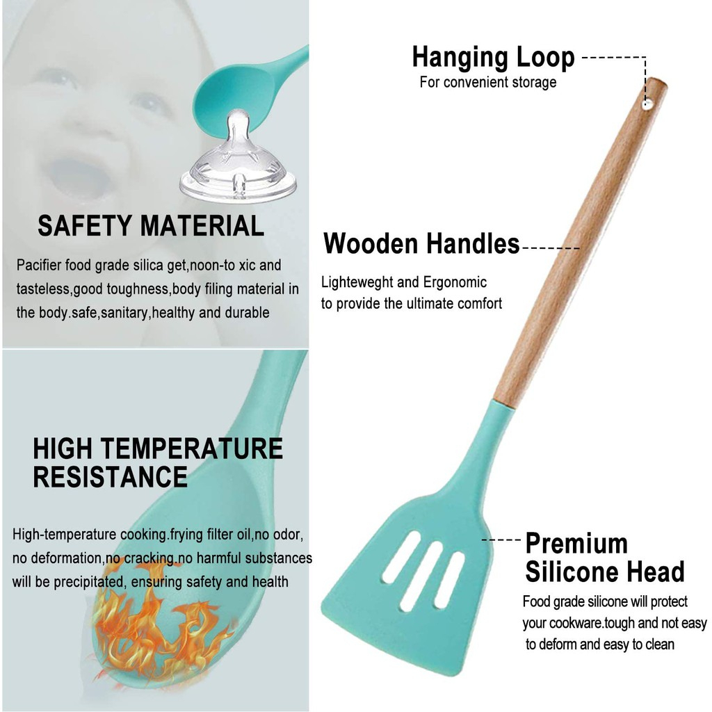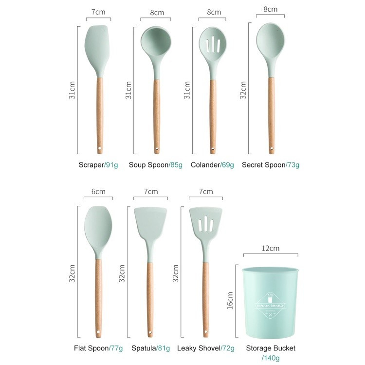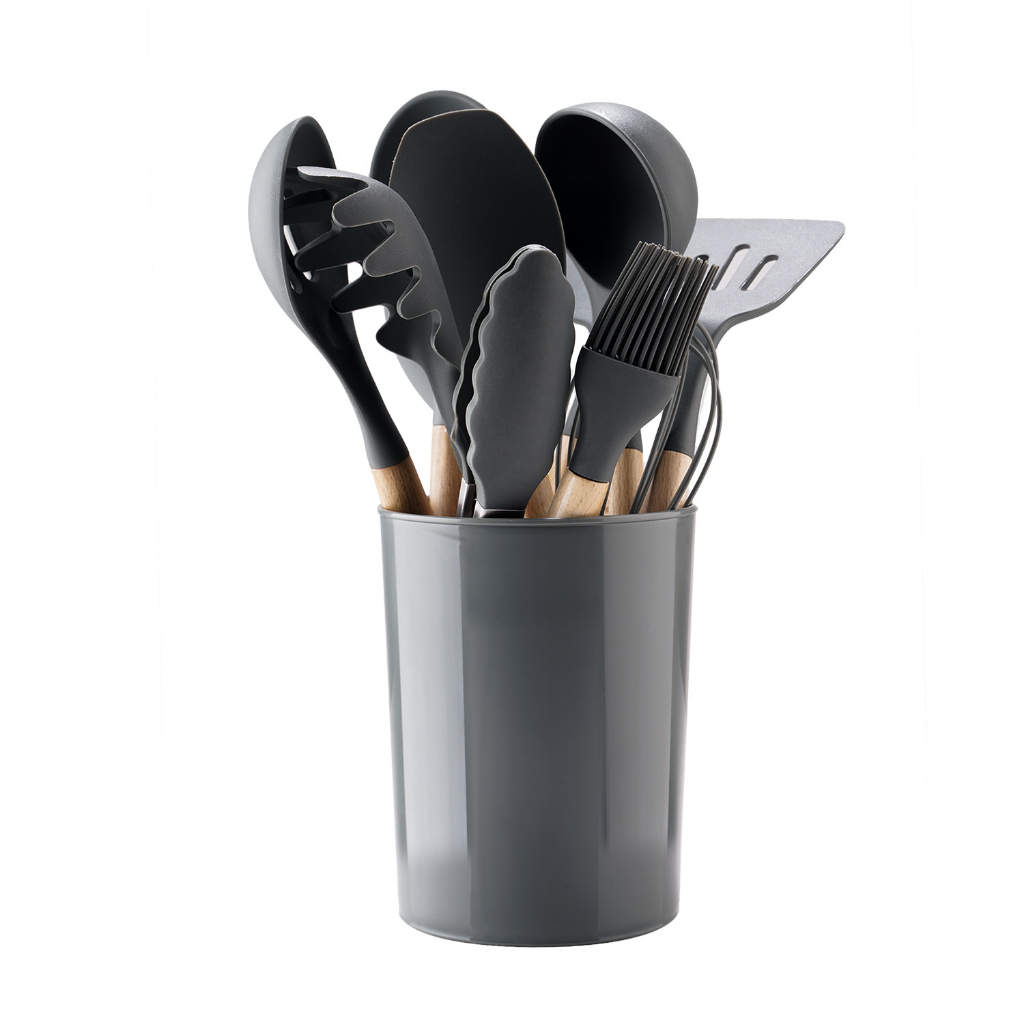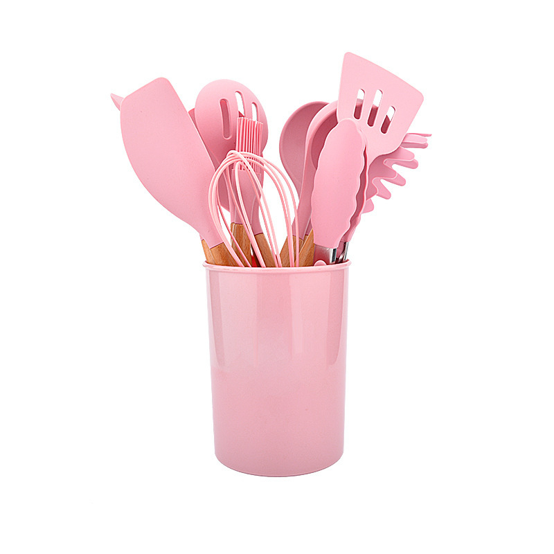 12 Pcs Silicone Kitchen Utensil Set Cookware Set Non-Stick Wooden Handle Kitchen Tools Set
