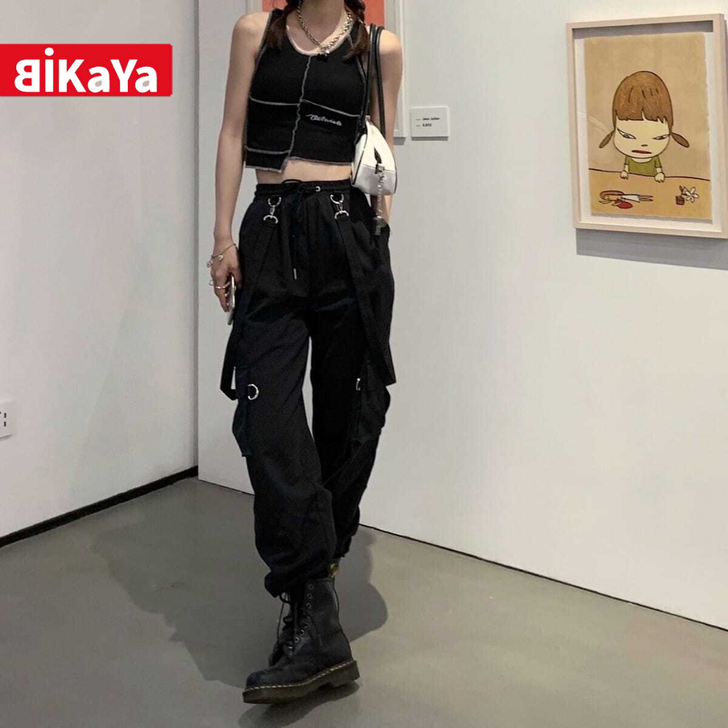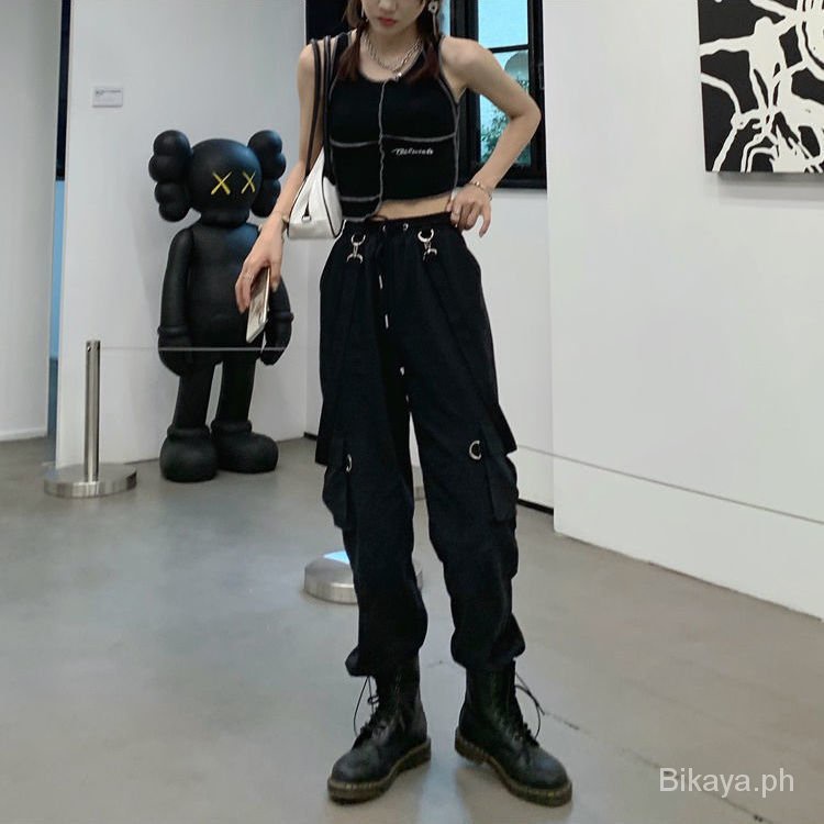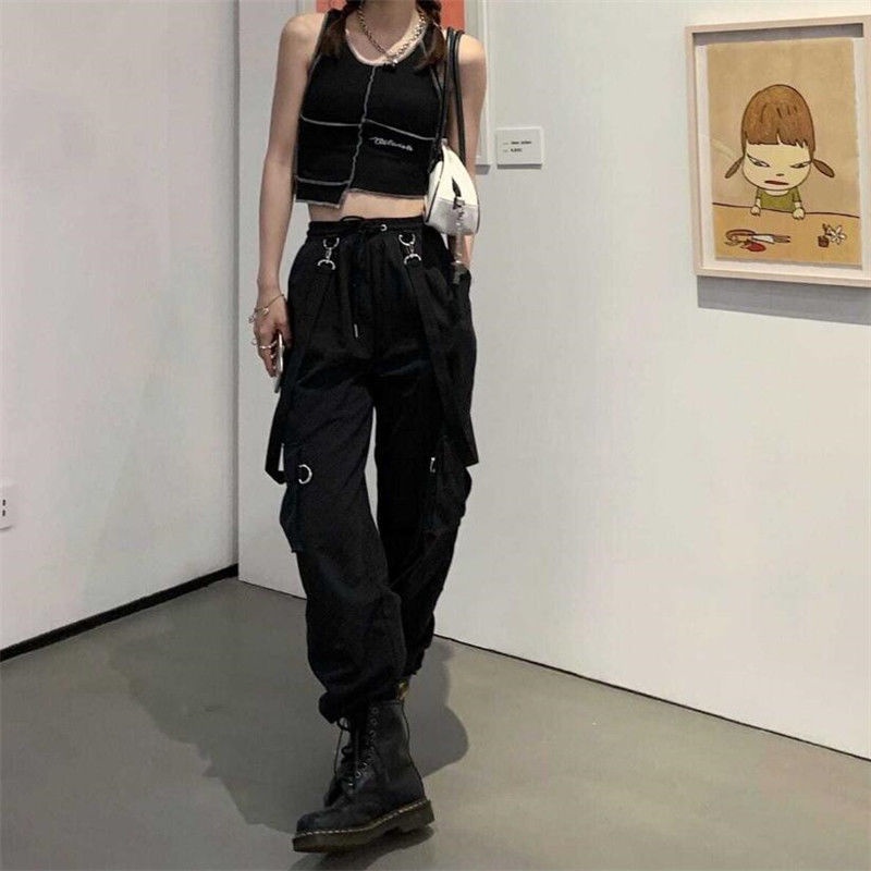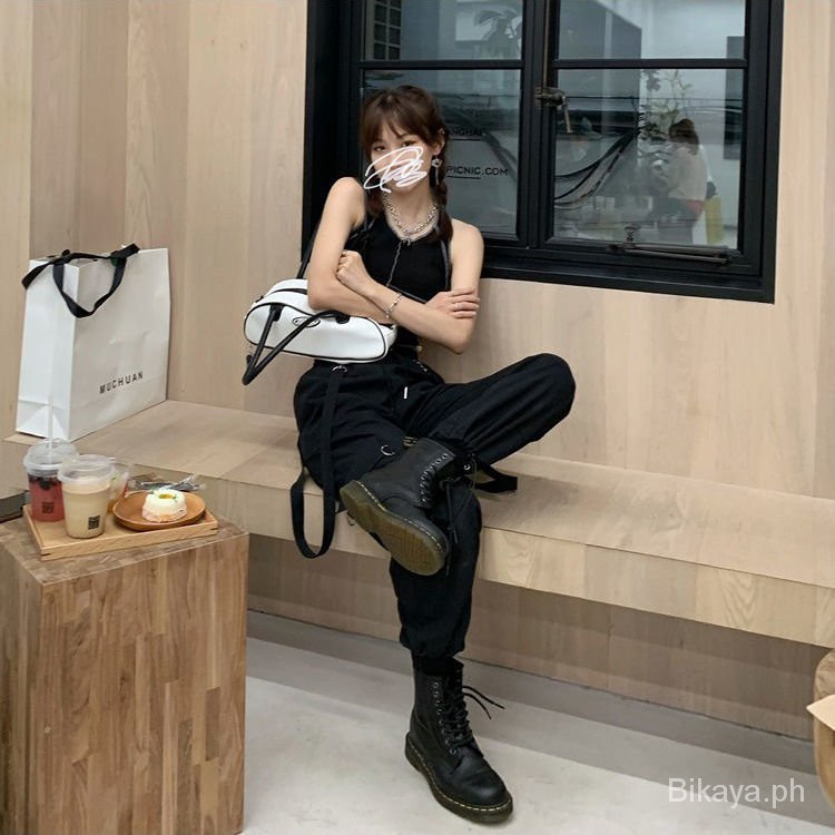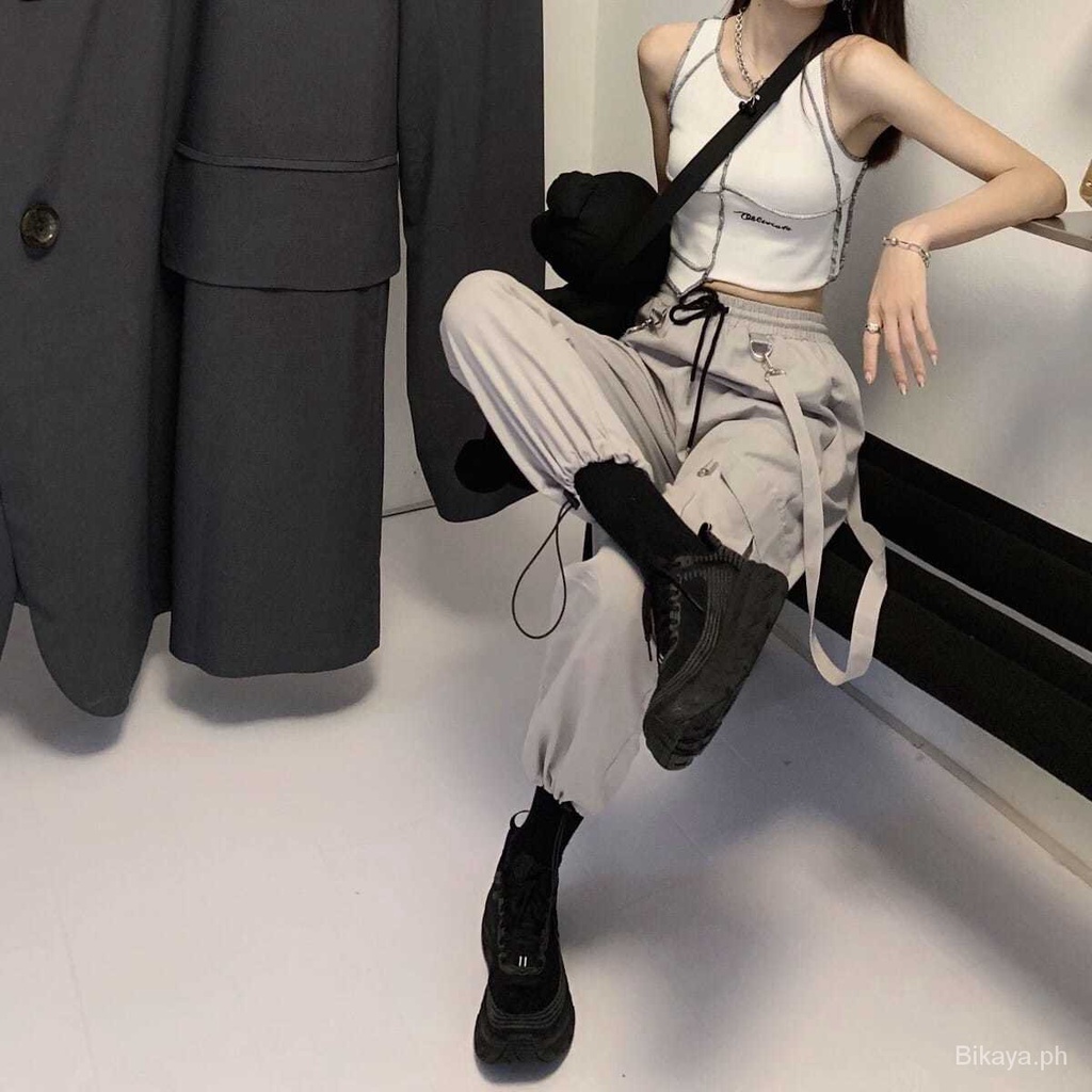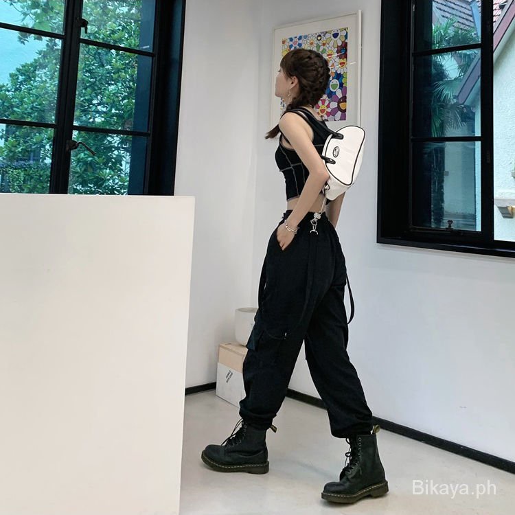 Women's Suspender Overalls New Korean Style Loose BF High Waist Slimming Casual Jogger Pants ins