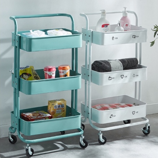 3 Tier Metal Rolling Storage Rack Organizer Bathroom Trolley Home Organizer Kitchen Utility Cart