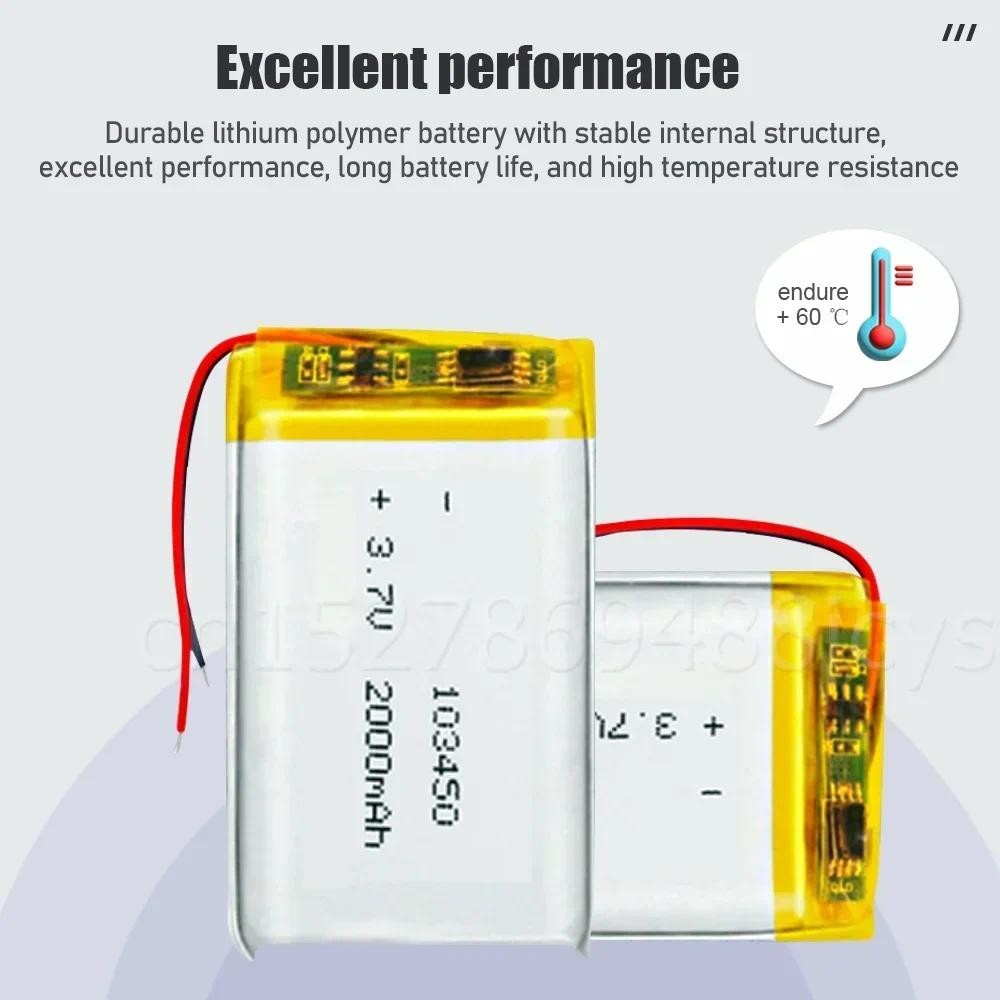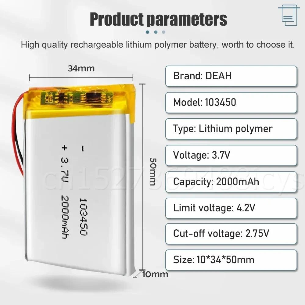 103450 3.7V 2000mAh Lithium Polymer Rechargeable Battery For MP3/4 GPS LED Light Power Bank