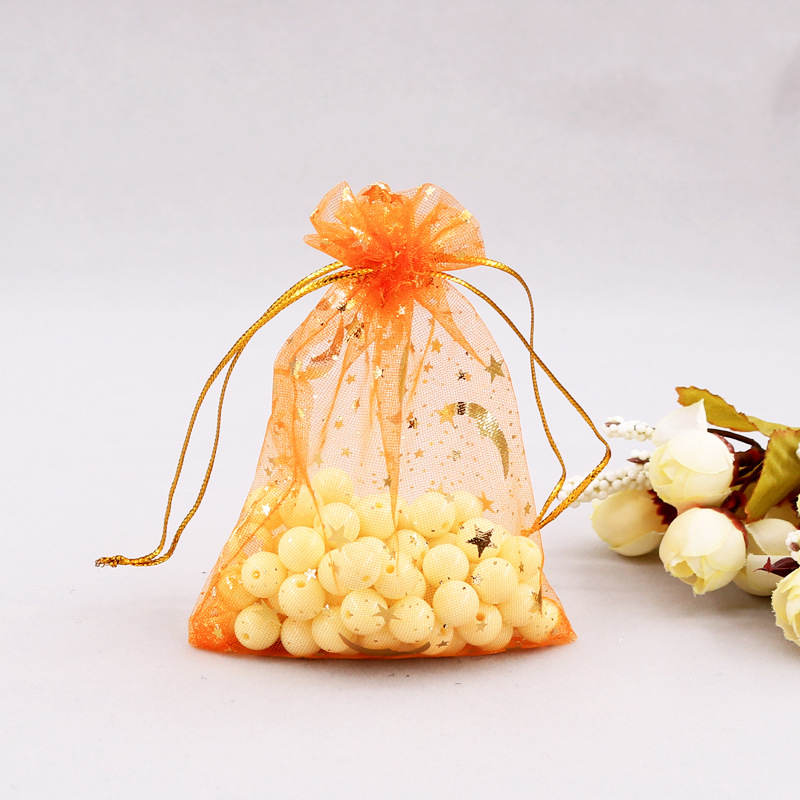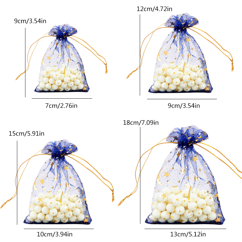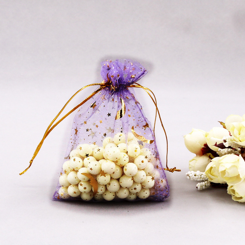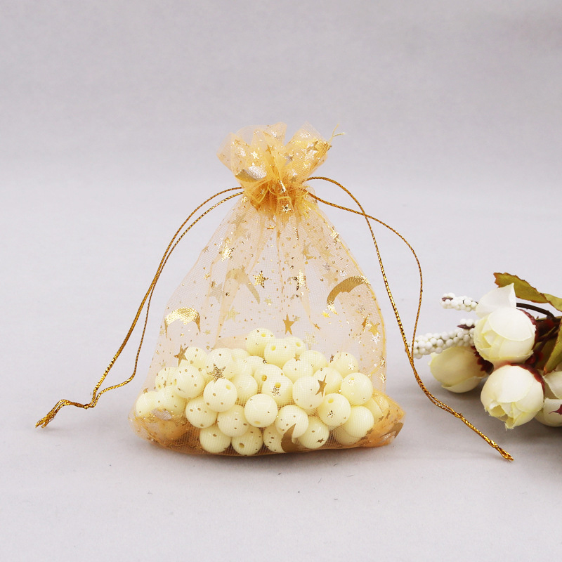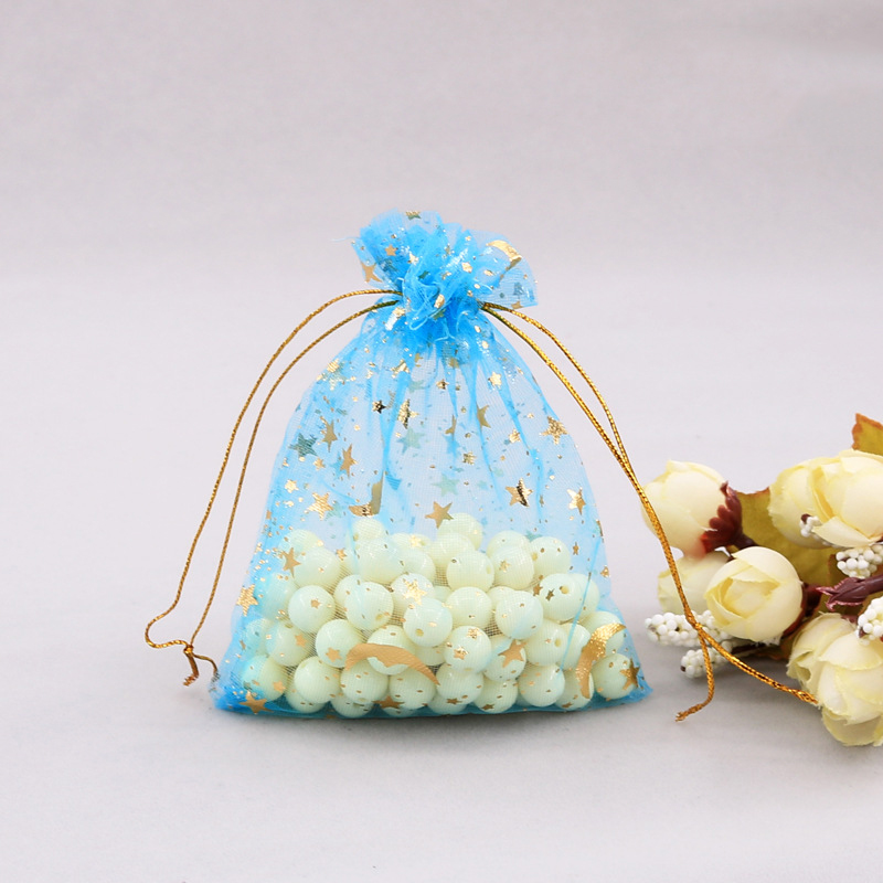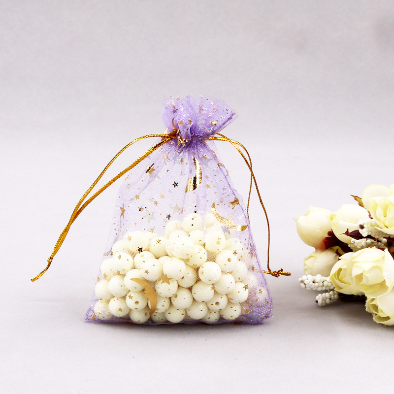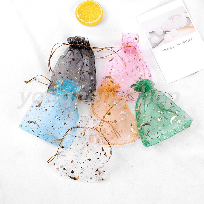 50pcs/lot Moon Star Organza Bags Drawstring Gift Bag Jewelry Wedding Candy Packaging Gauze Bag Pouches
