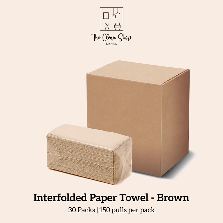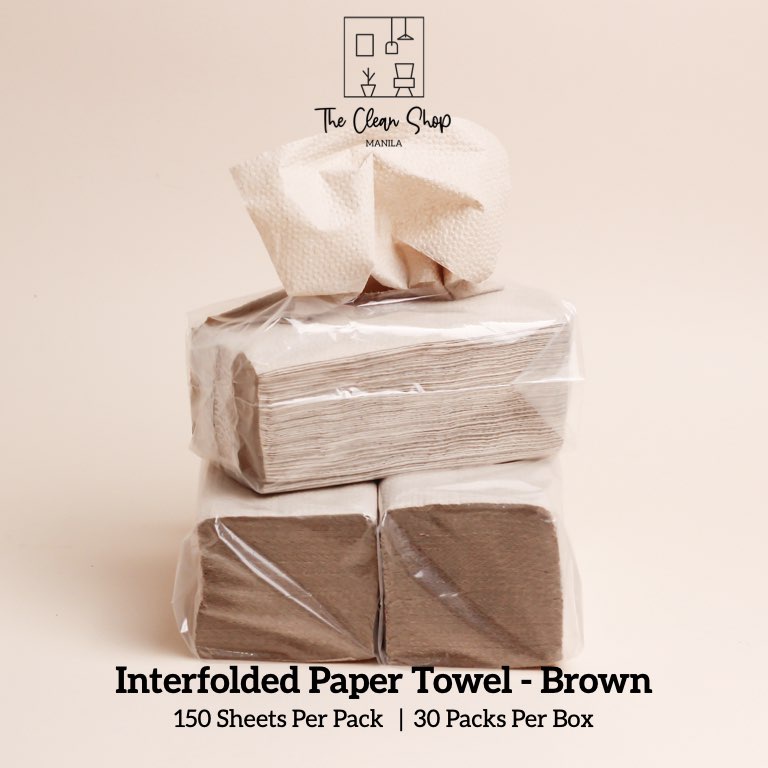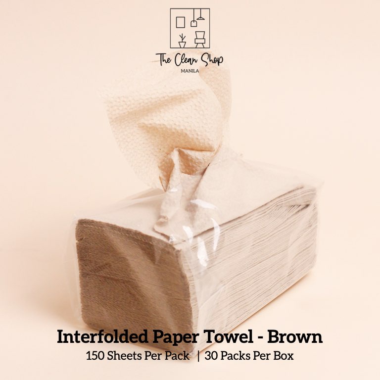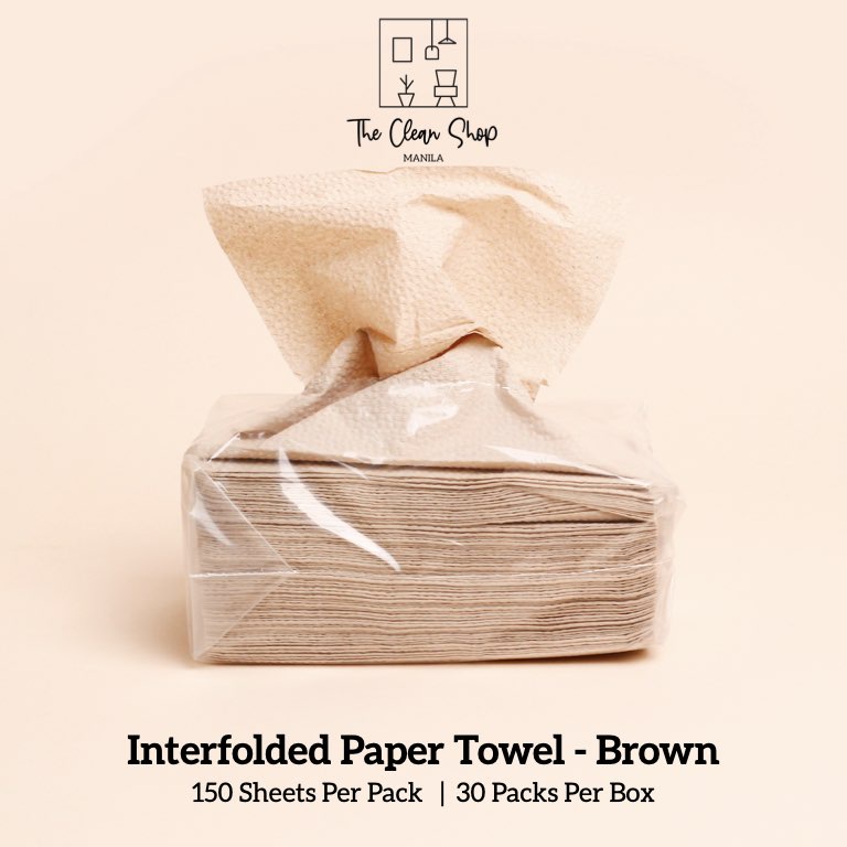 The Clean Shop Manila Pack of 6 Interfolded Paper Towel - Brown [150 pulls/pack]