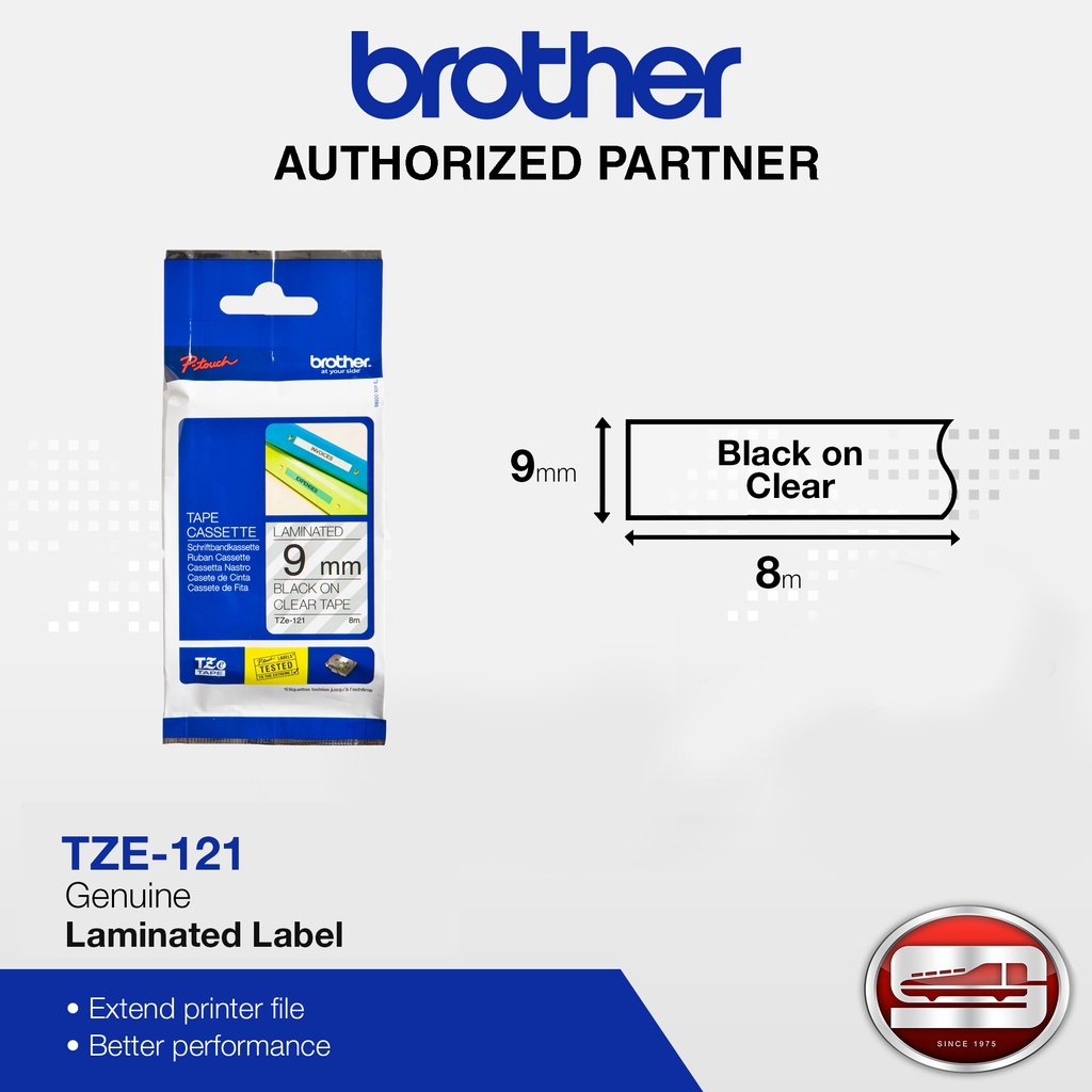 Brother TZe-121 Black on Clear 9mm Labelling Tape (100% Original)