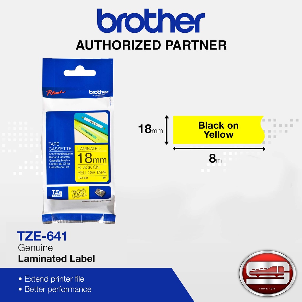 Brother TZe-641 Black on Yellow 18mm Labelling Tape (100% Original)