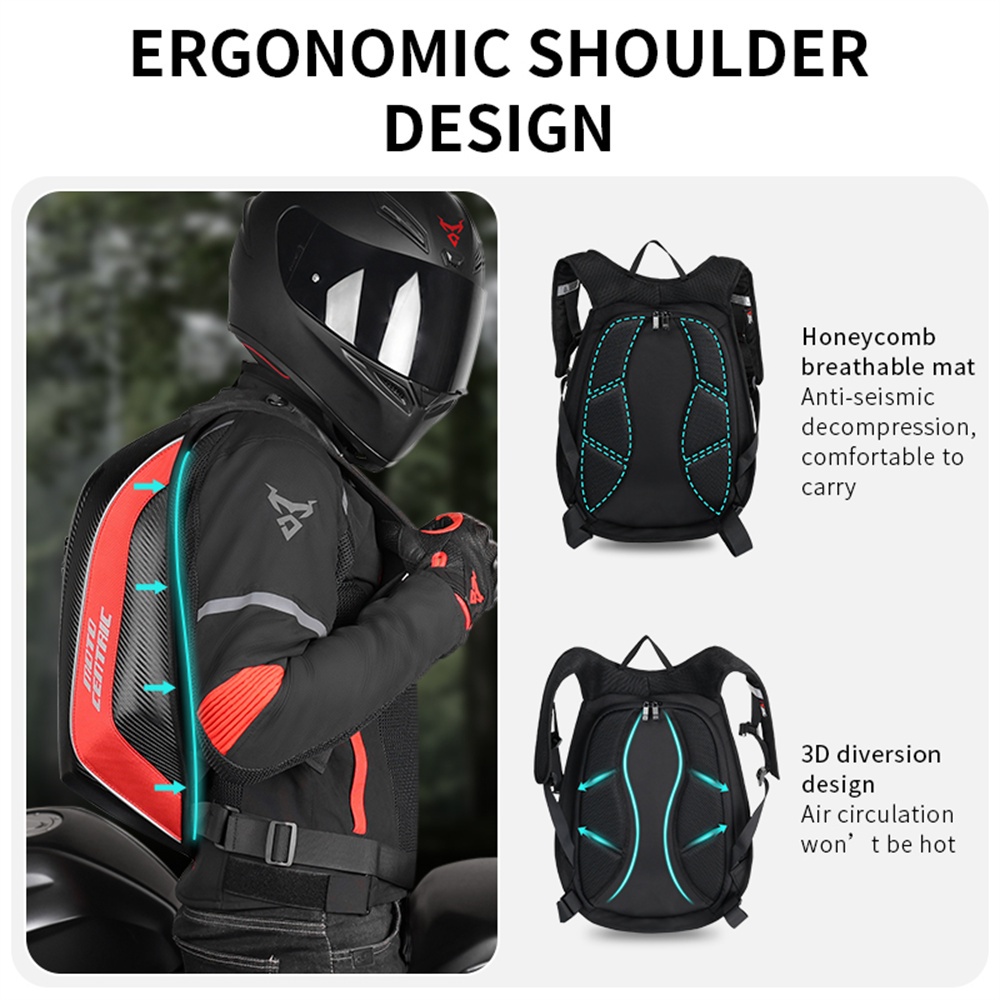 MOTOCENTRIC Motorcycle Backpack Helmet Bag Waterproof Carbon Fiber Moto Backpack Hard Shell Reflective Motorbike Suitcase
