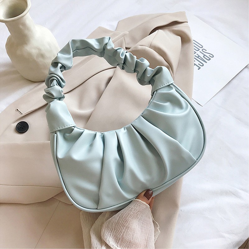 Yogodlns Solid Color Cloud Purse for Women Underarm PU Leather Shoulder Bags with Pleated Handle