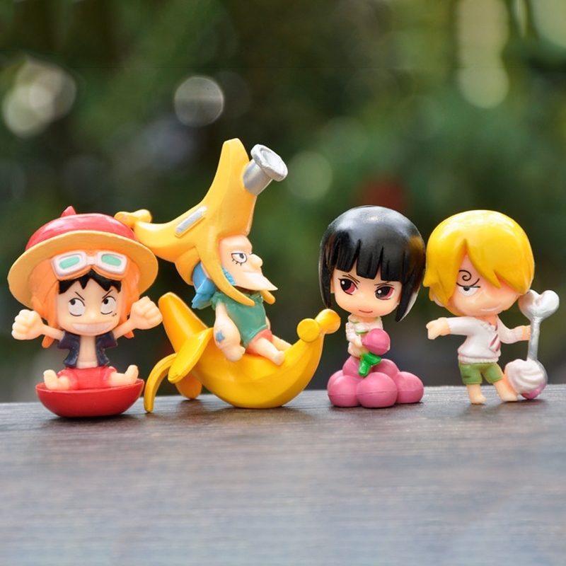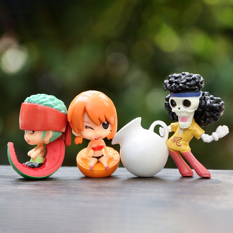 9Pcs/Set 5-7cm Anime One Piece Luffy Zoro Nami Usopp Sanji Chopper Robin Franky Brook Fruit Watermelon Banana Q Version PVC Action Figures Model Doll Toys