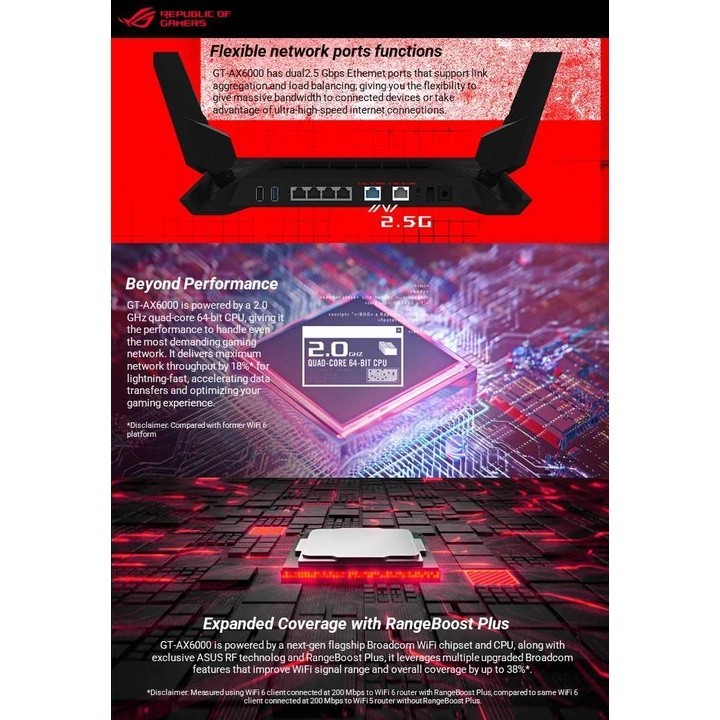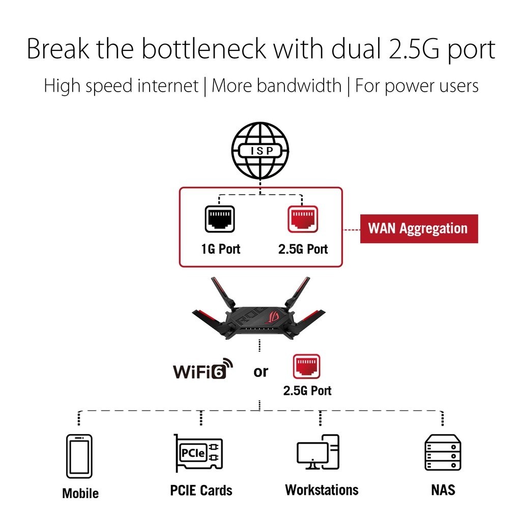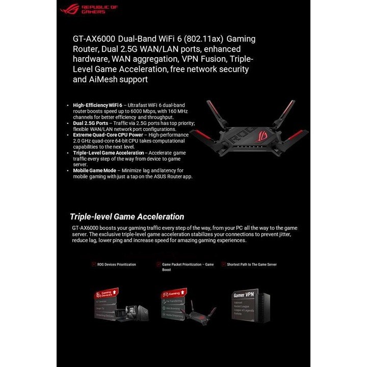 Original ASUS ROG Rapture GT-AX6000 Dual-Band WiFi 6 Gaming Router - Dual 2.5G Ports, Enhanced Hardware