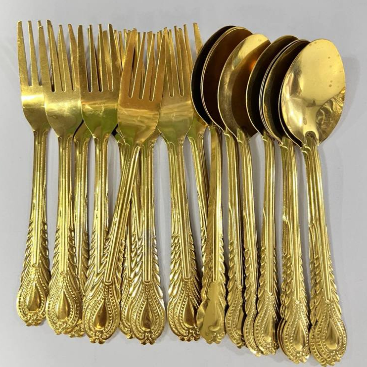 24pcs set Spoon and fork gold plated Set