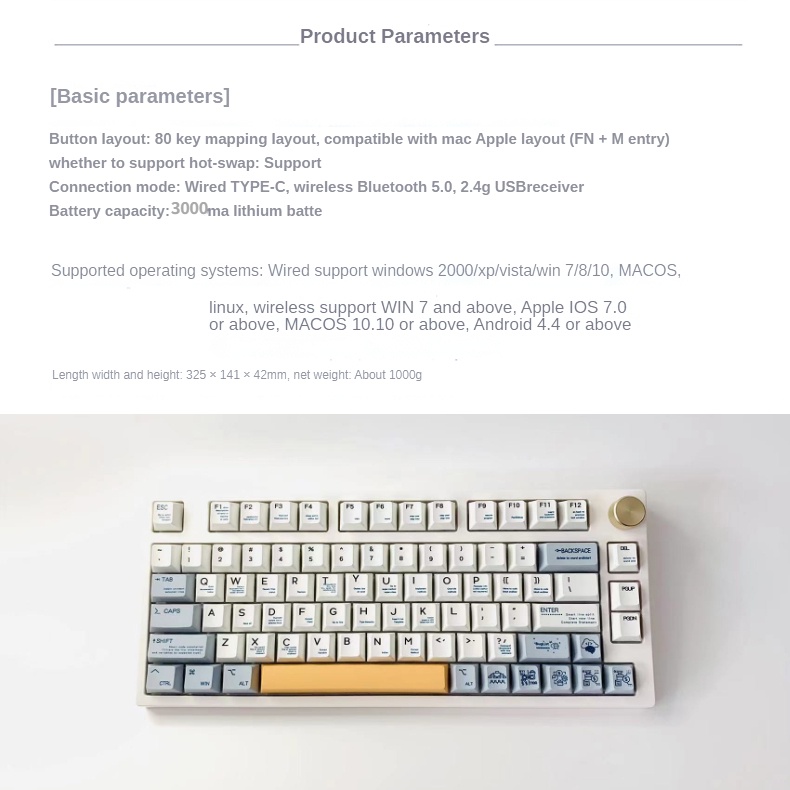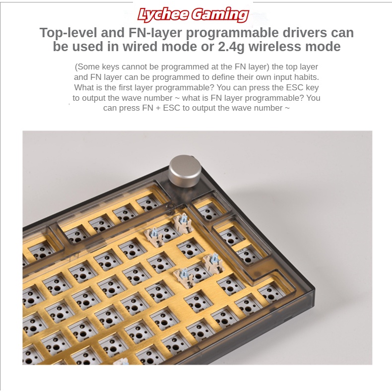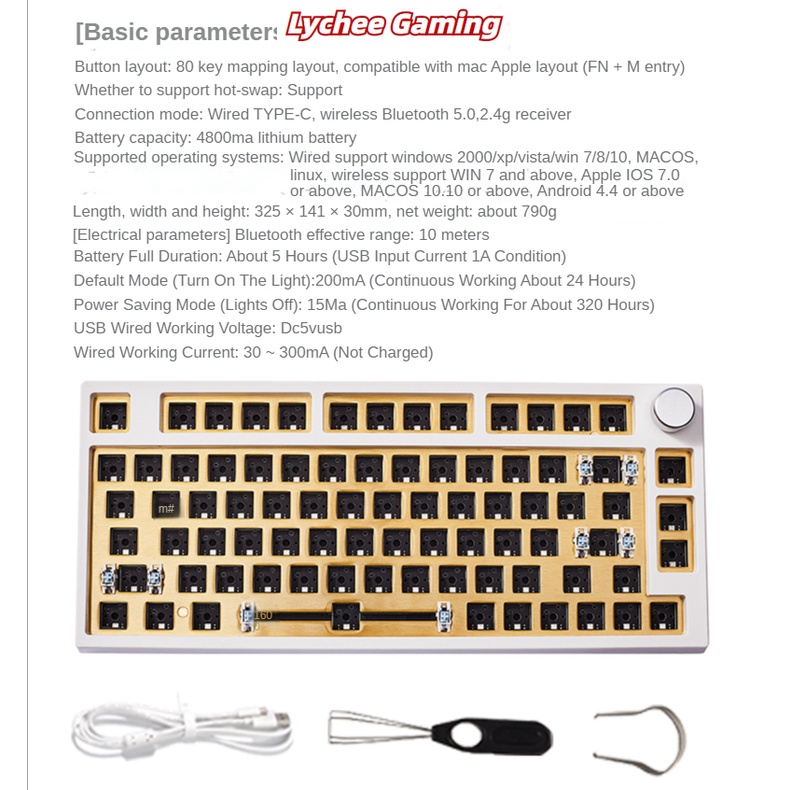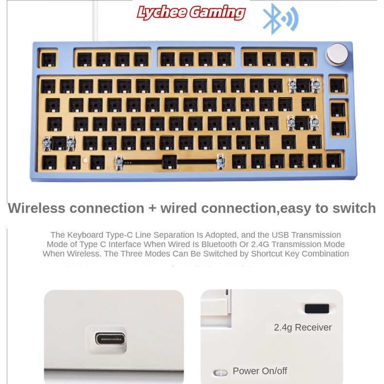 Lychee Gaming G80 hot swap RGB Bluetooth/ 2.4G wireless wired tri-mode portable 75% matching mechanical keyboard Gasket hot swappable G80pro
