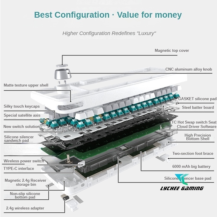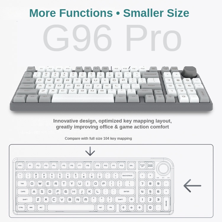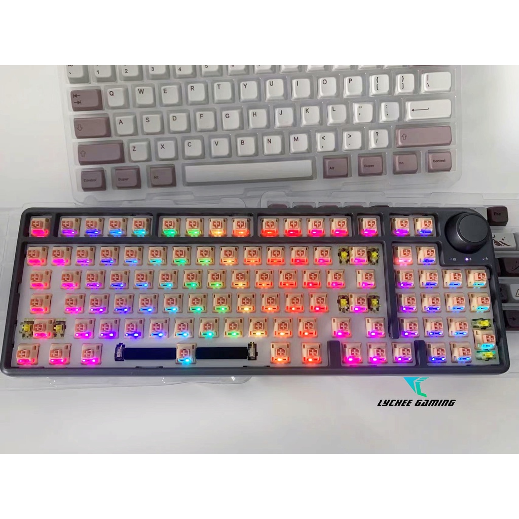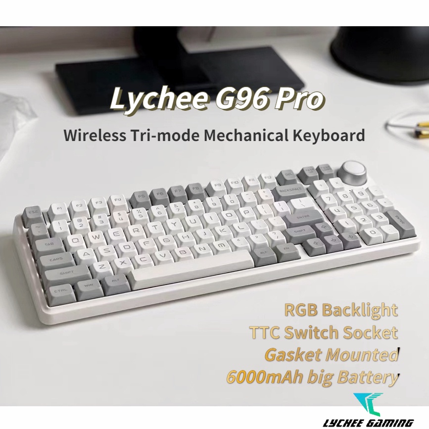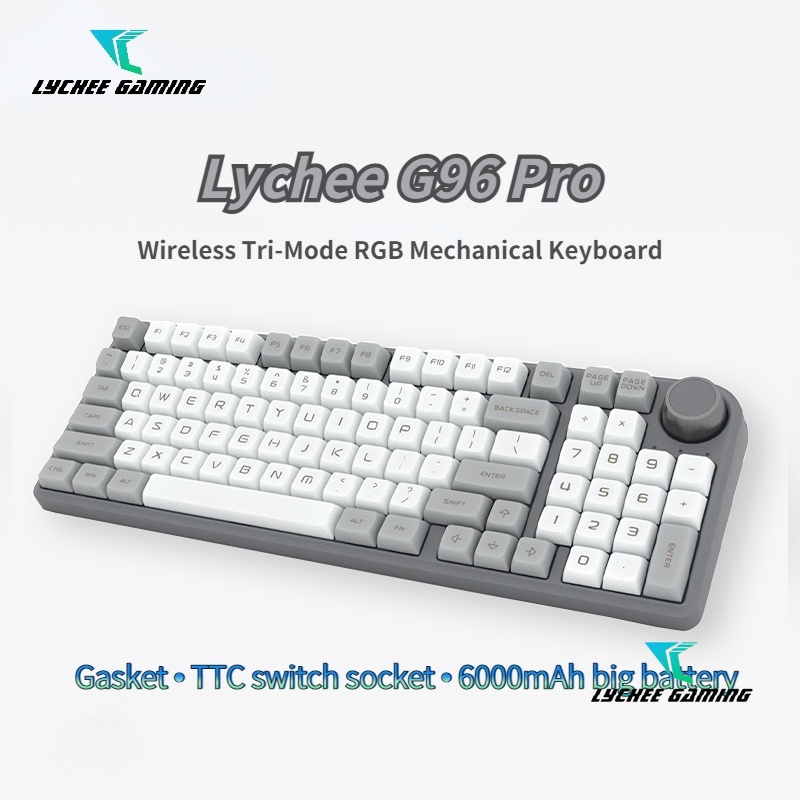 2023 New V2! Lychee G96 Pro wireless Bluetooth 5.0/3.0+2.4g+ wired Tri-mode RGB mechanical keyboard hotswap Gasket mounted volume knob programmable keyboard South facing Gateron