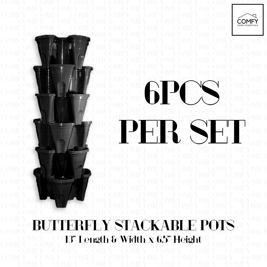 (6PCS/SET) 13 Inches Butterfly Stackable Tower Vertical Flower Pot For Home Gardening (COD)