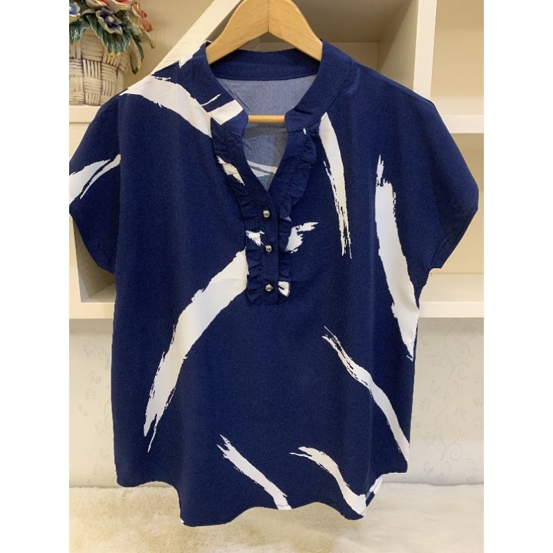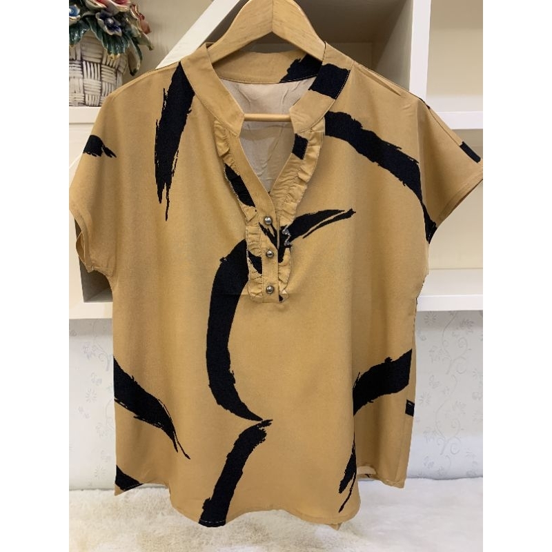Bangkok fashion casual Brush print shirring blouse 1111#