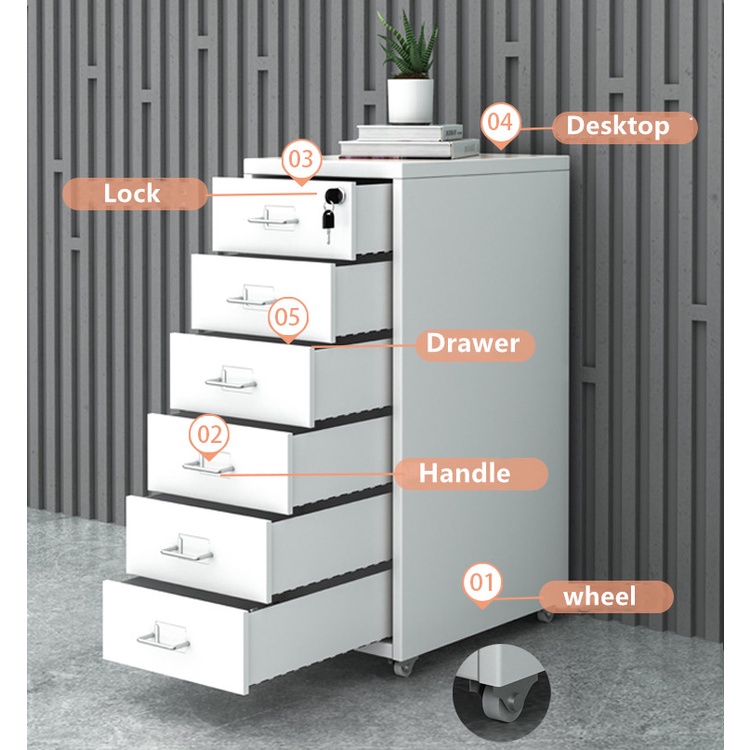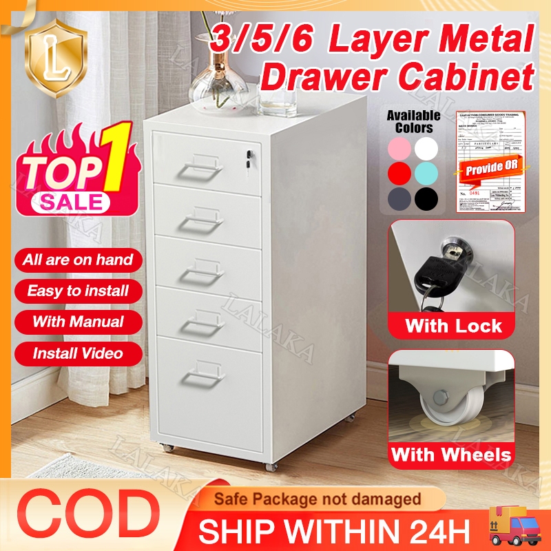 【On Hand】3/5/6 Layer Metal Cabinet Drawer With Lock Steel File Drawer Storage Cabinet Organizer COD