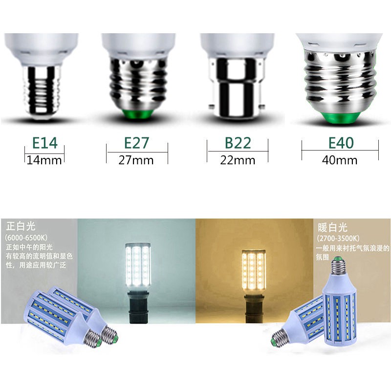Energy Saving E14 E27 B22 220V LED 10W 20W 30W 40W 60W 80W High Brightness Lamp Light Corn Bulb Chandelier for Home