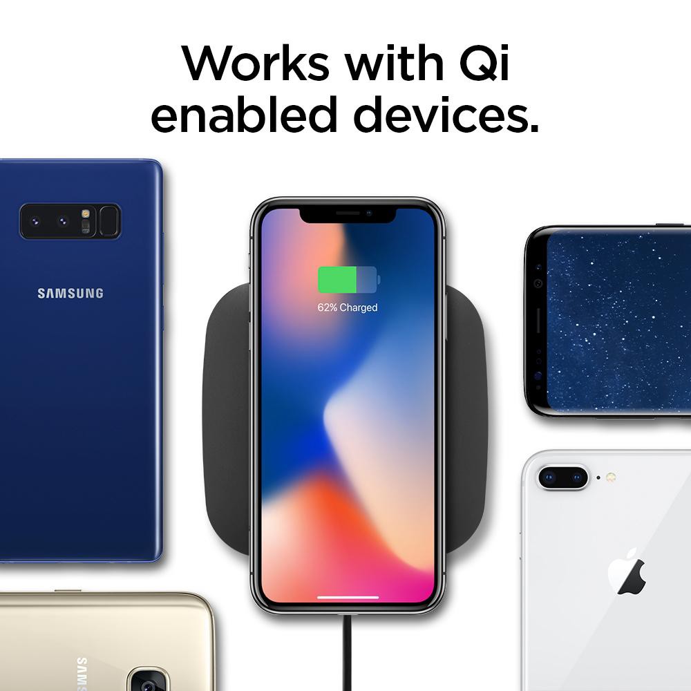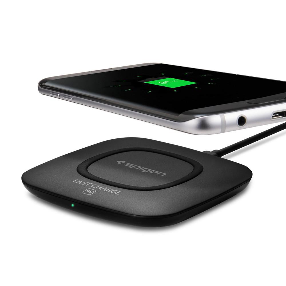 Spigen Essential F301W Qi Fast Charge Enabled Wireless Charger (9W/Ultra Slim) - Black