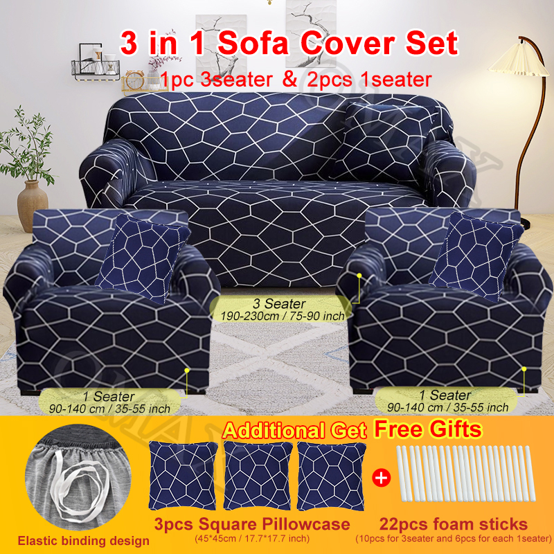 3 in 1 Sofa Cover Set 2 Pcs Single and 1 Pc 3seater Set Sofa Cover Full Package Sofa Cover(3pcs)