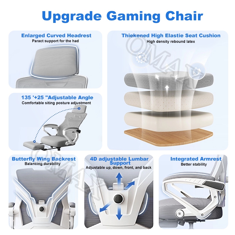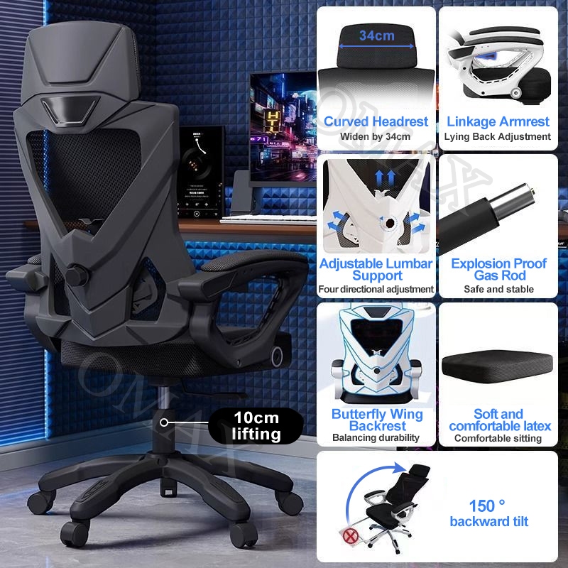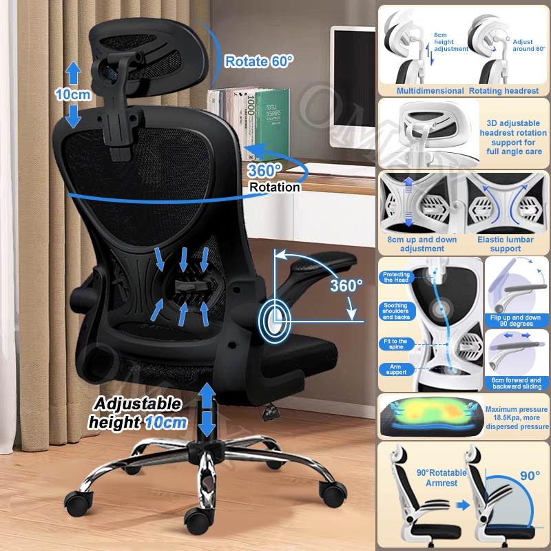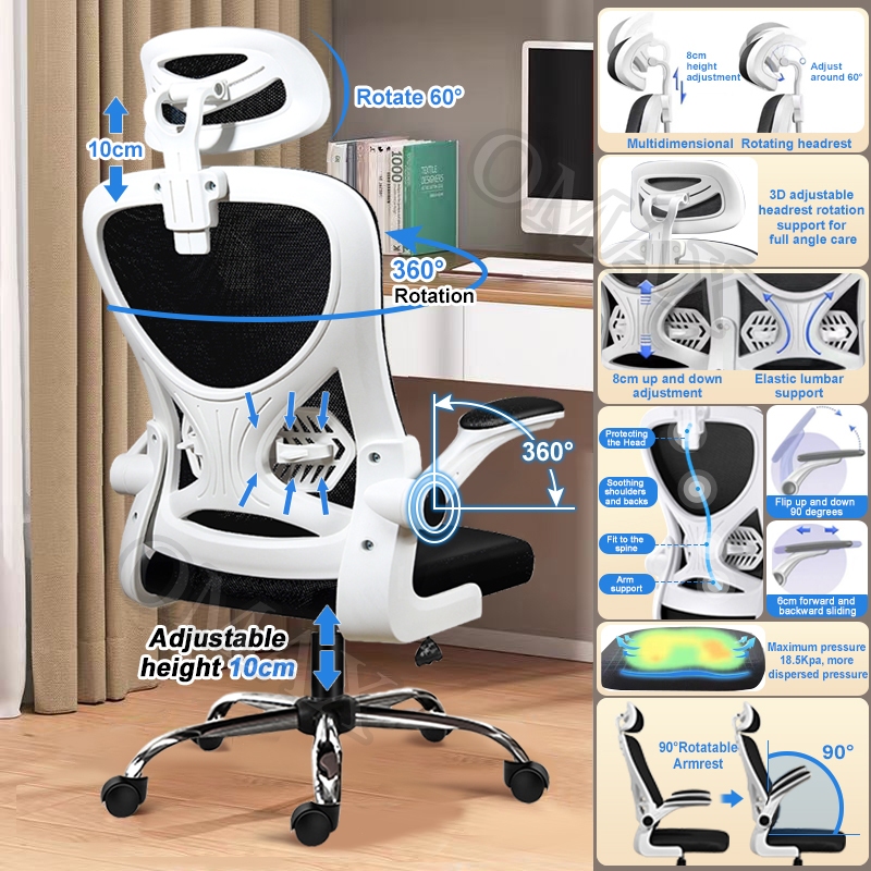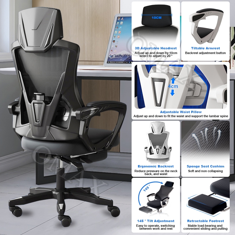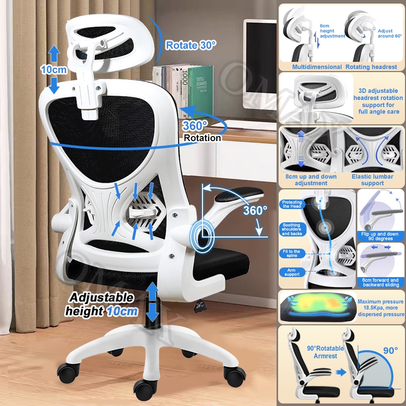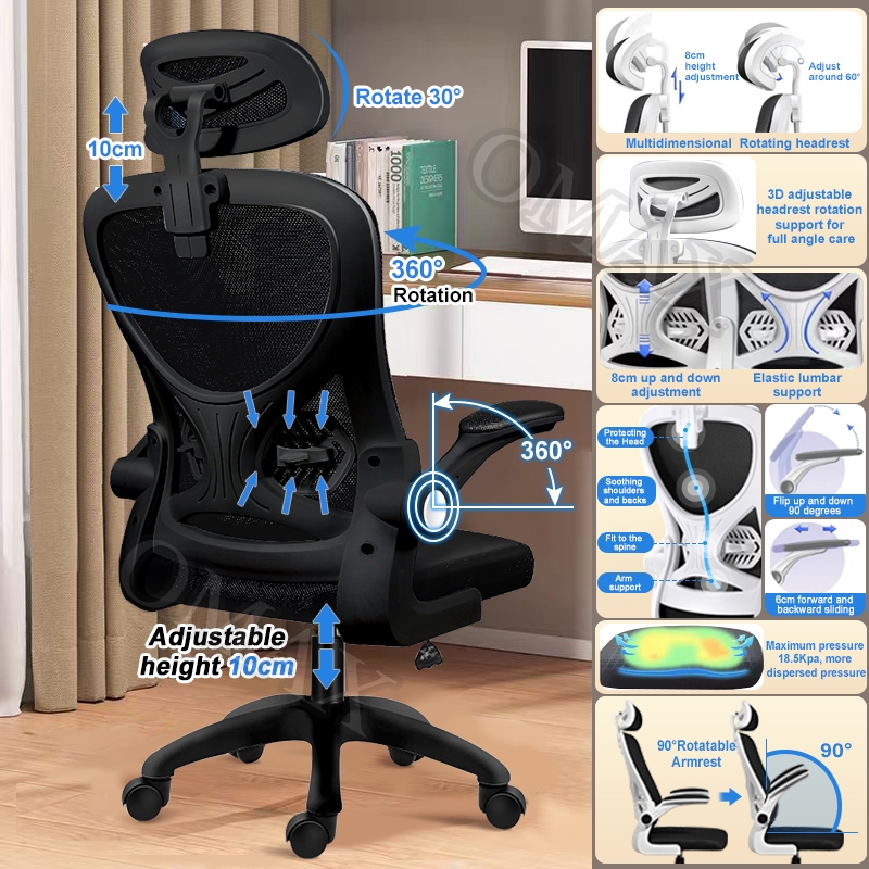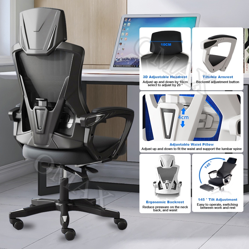 Ergonomics Chair High Back Mesh Office Desk Computer stool with Massage Lumbar Support