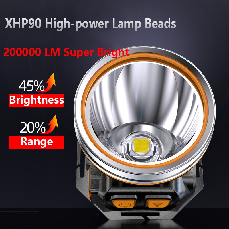 300000 LM XHP90.2 Powerful Led Headlamp Built-in Battery Headlight Waterproof USB Rechargeable Head Flashlight Head Torch