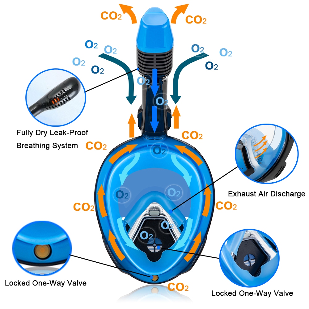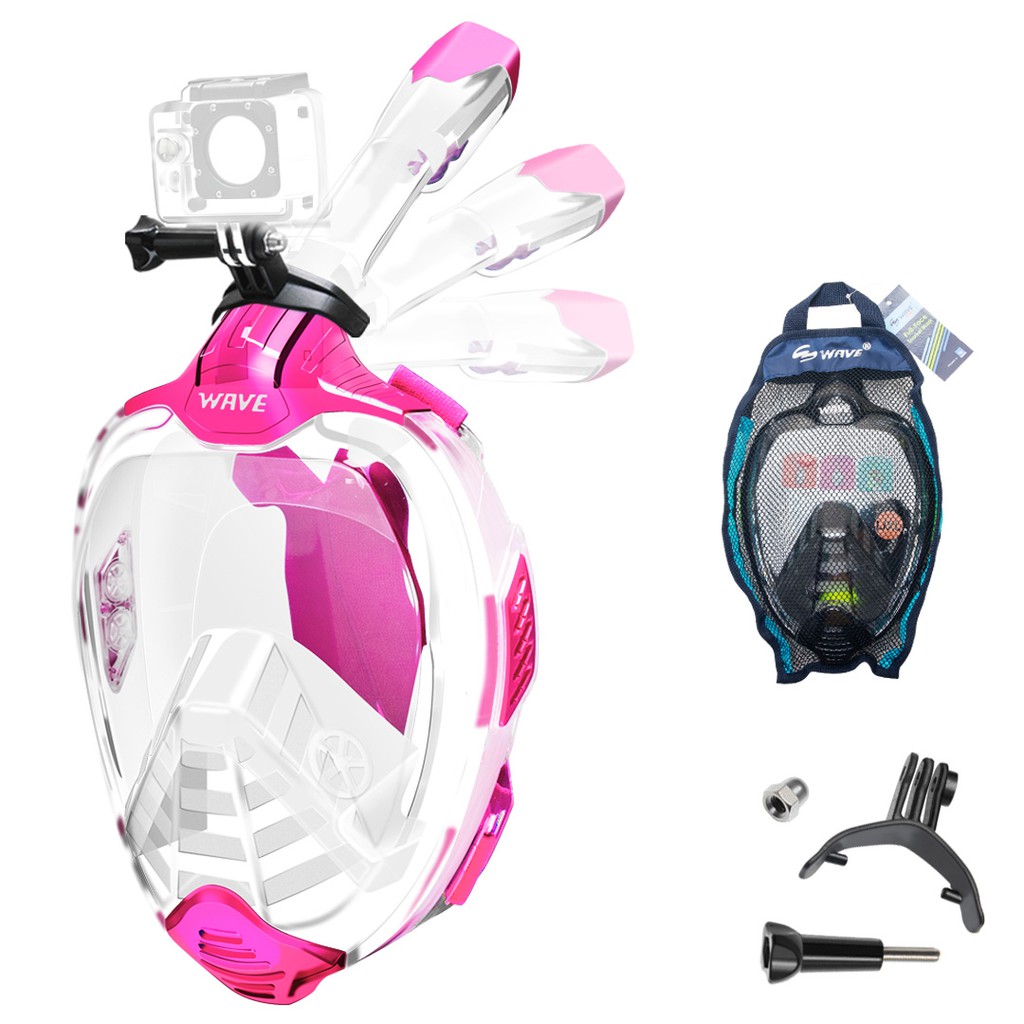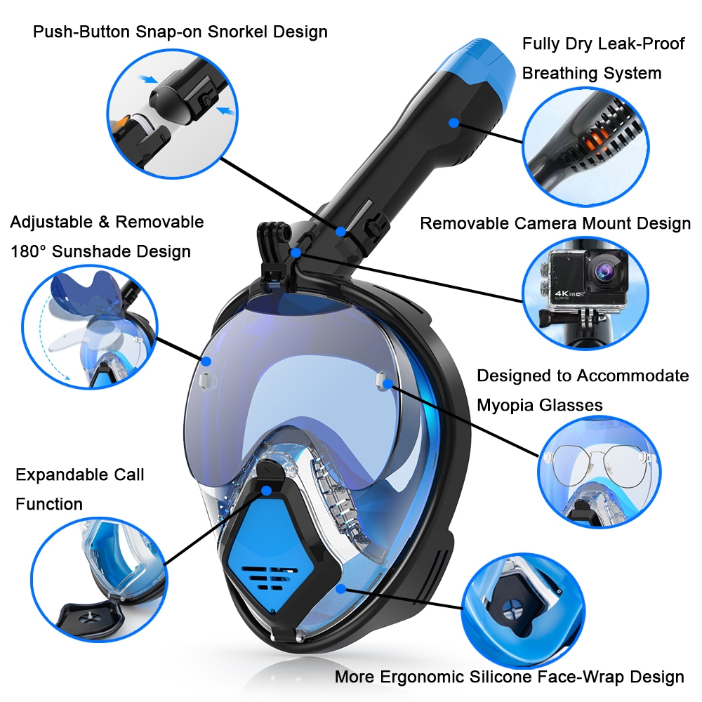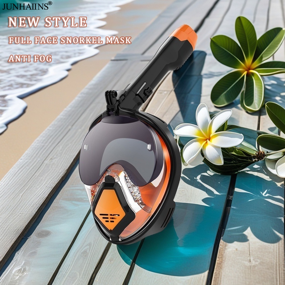 JUNHAIINS Full Face Snorkel Mask 180 Degree Anti-Fog Buong Face Scuba Diving Goggles Anti-Leak Foldable Snorkeling Mask with Camera Mount