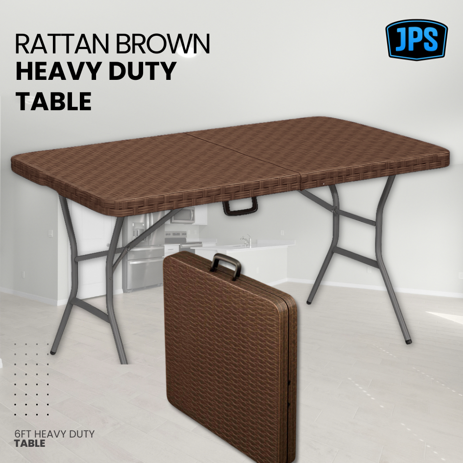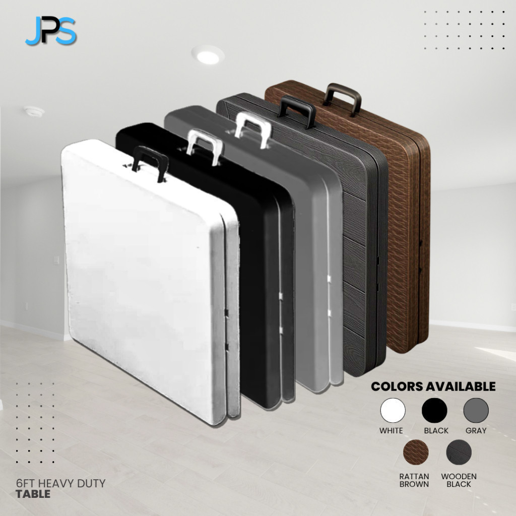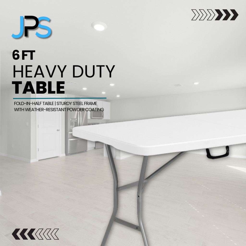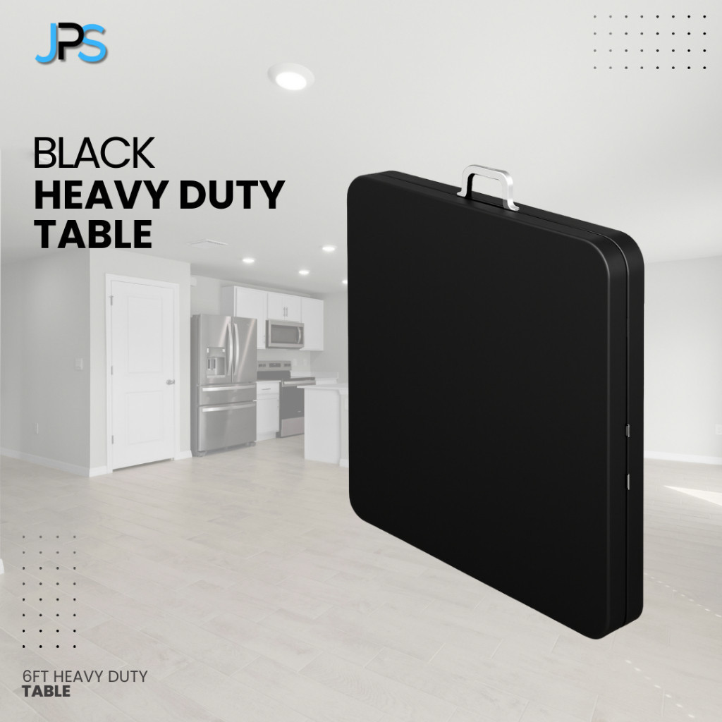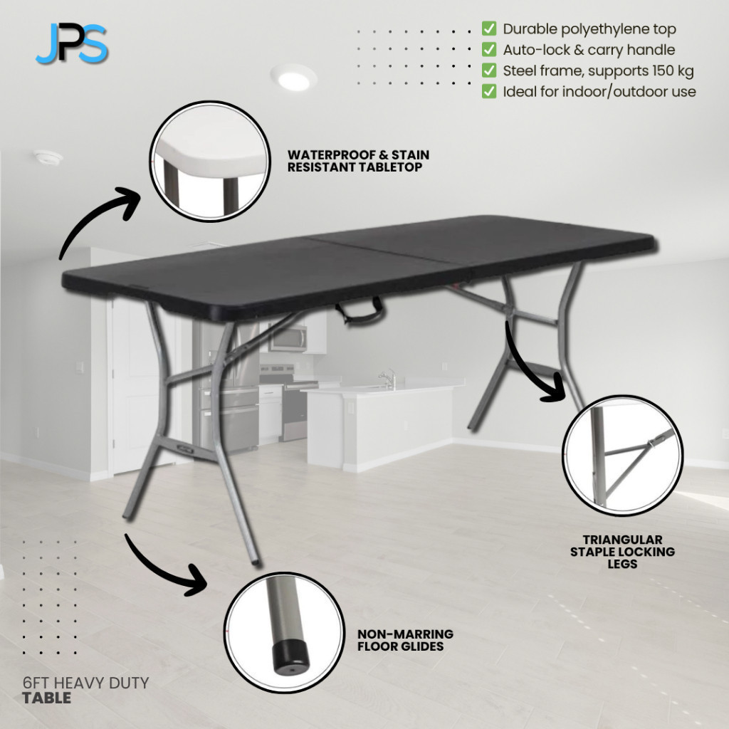 JPS Heavy Duty 6 Feet Foldable Table & Chair Black White