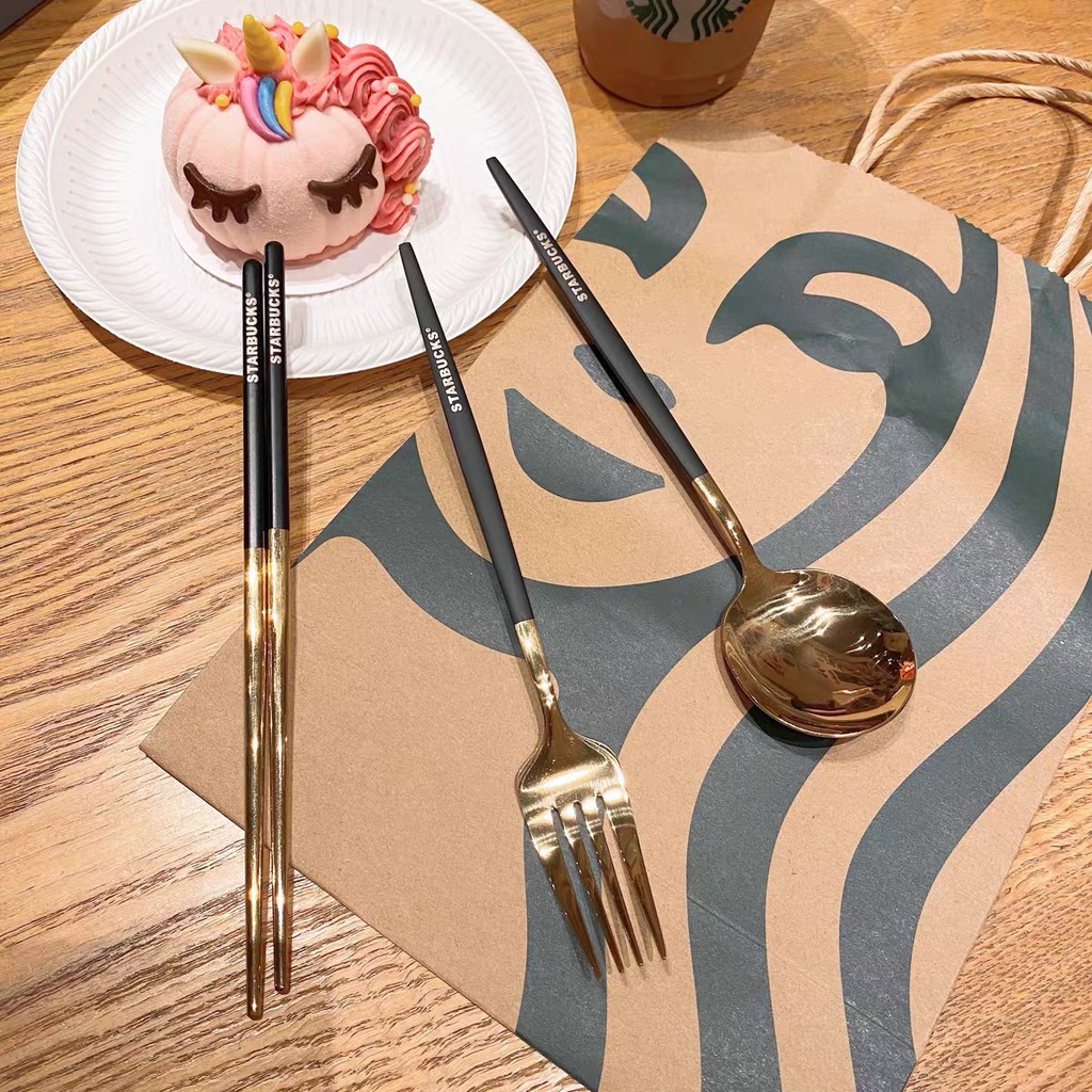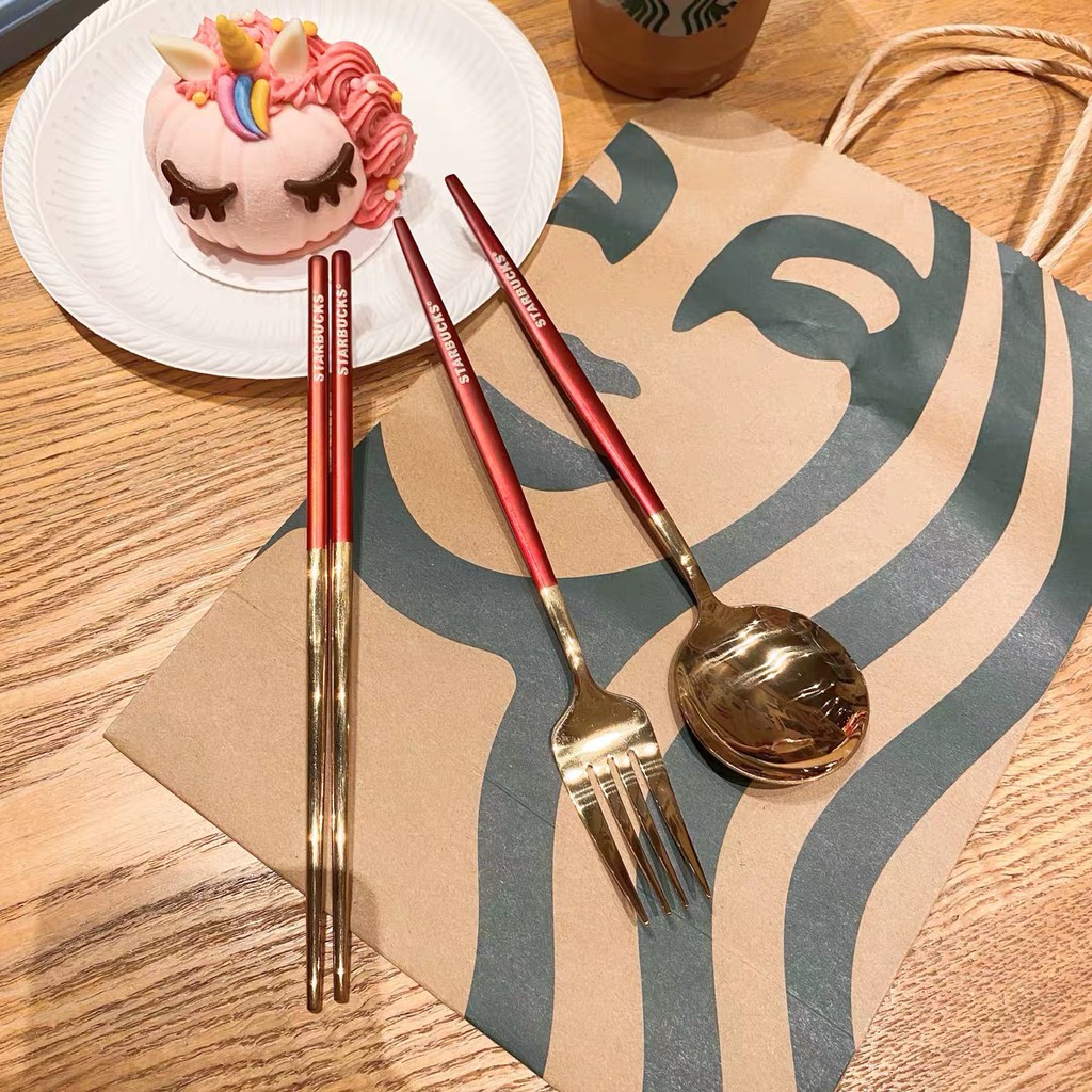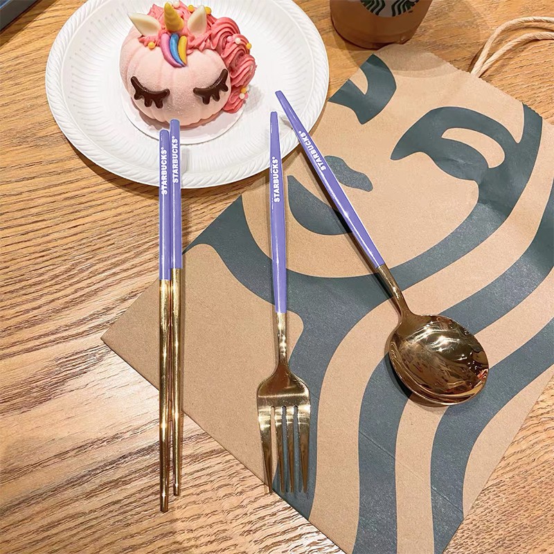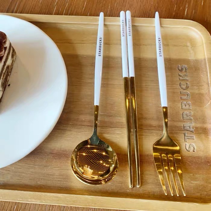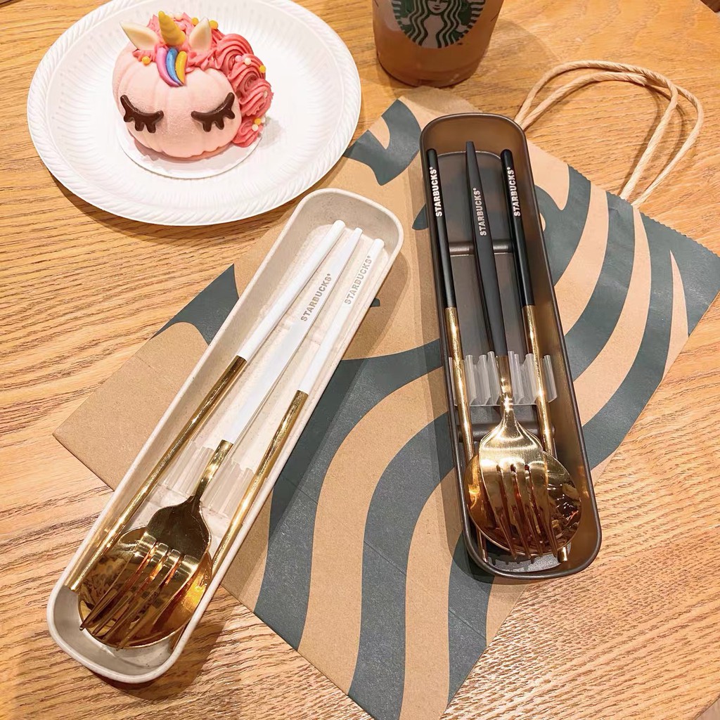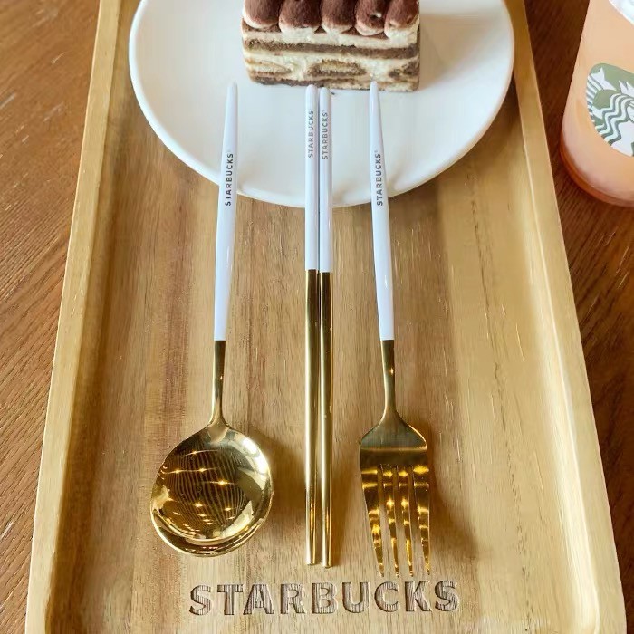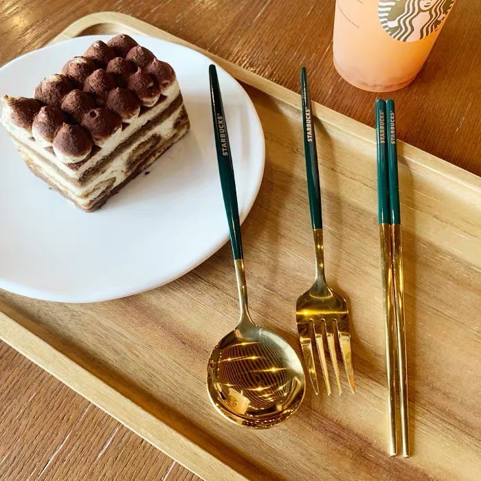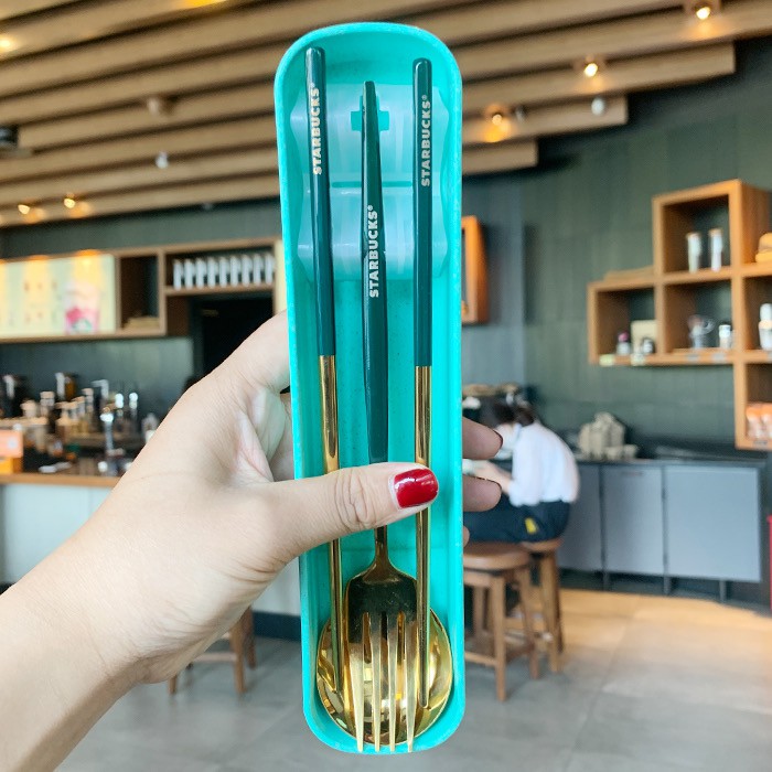Starbucks 3 in 1 Chopsticks Spoon and Fork Creative Metal Cutlery Set 304 Stainless Steel (with box)
