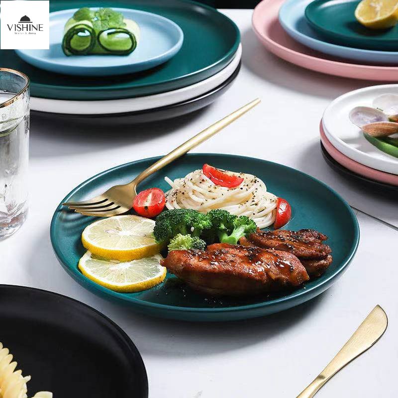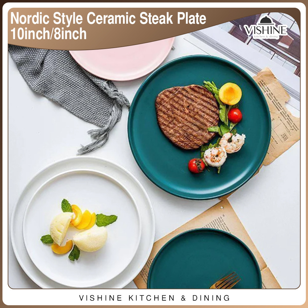 VISHINE 10inch/8inch Nordic Style Household Ceramic Western Steak Plate Dinner Plate Dining Table