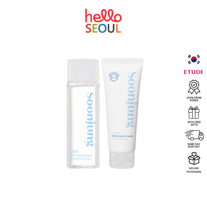 EH Soon jung Hydro Barrier Cream/10-Free Moist Emulsion 20ml/ Relief Toner 25ml RENEWED PACKAGING
