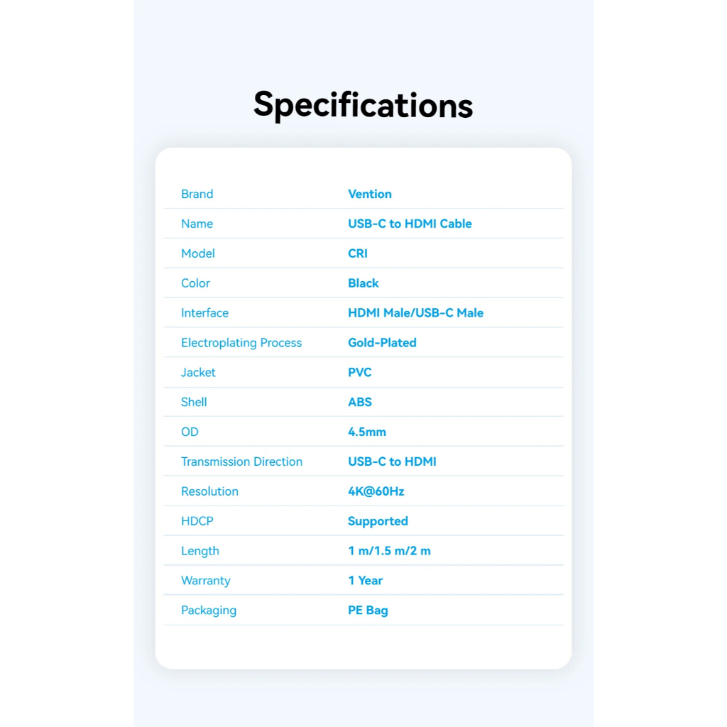 Vention USB C to HDMI Cable 4K@60Hz Type C to HDMI-Compatible HDTV DisplayPort Cable PC Monitor Laptop DP Cord