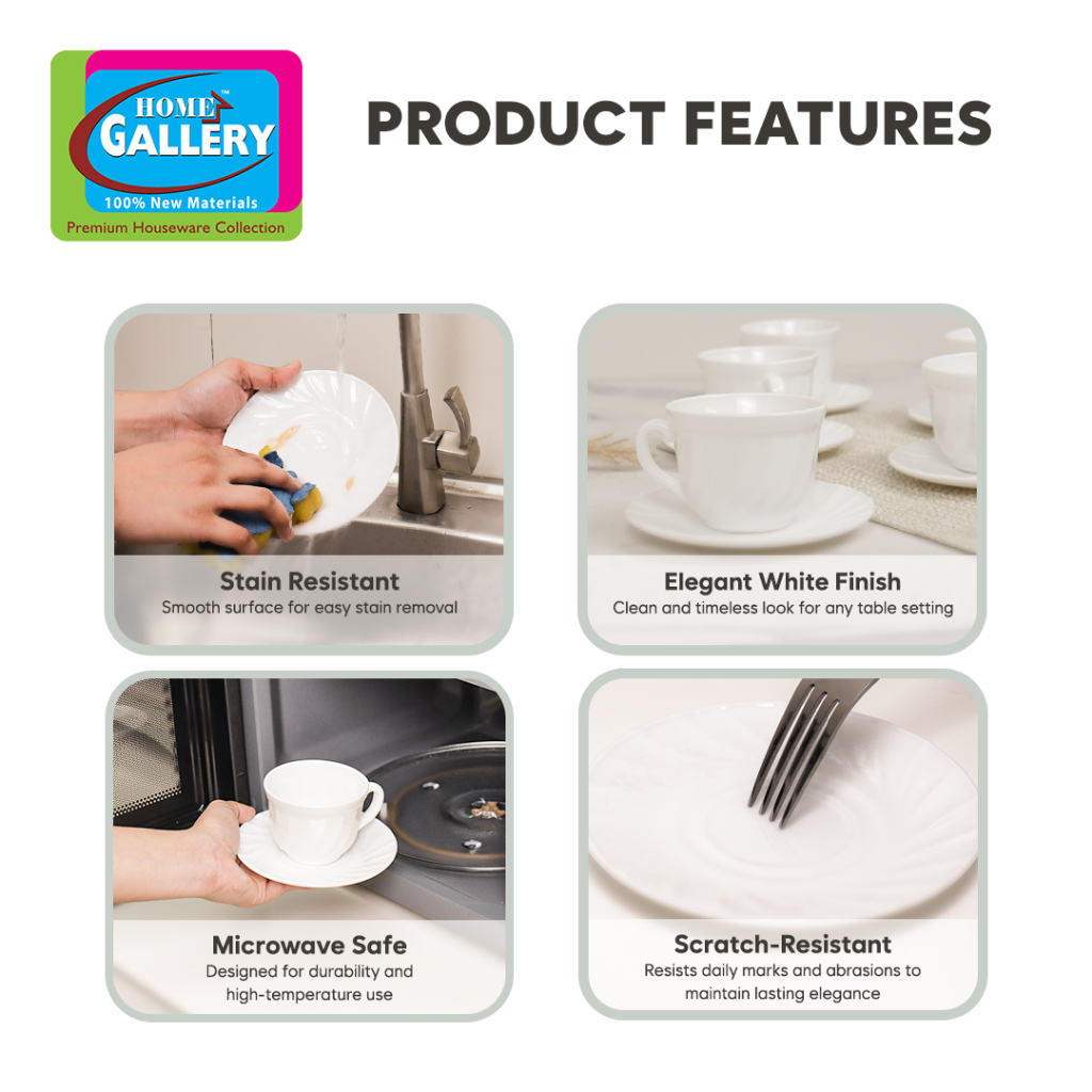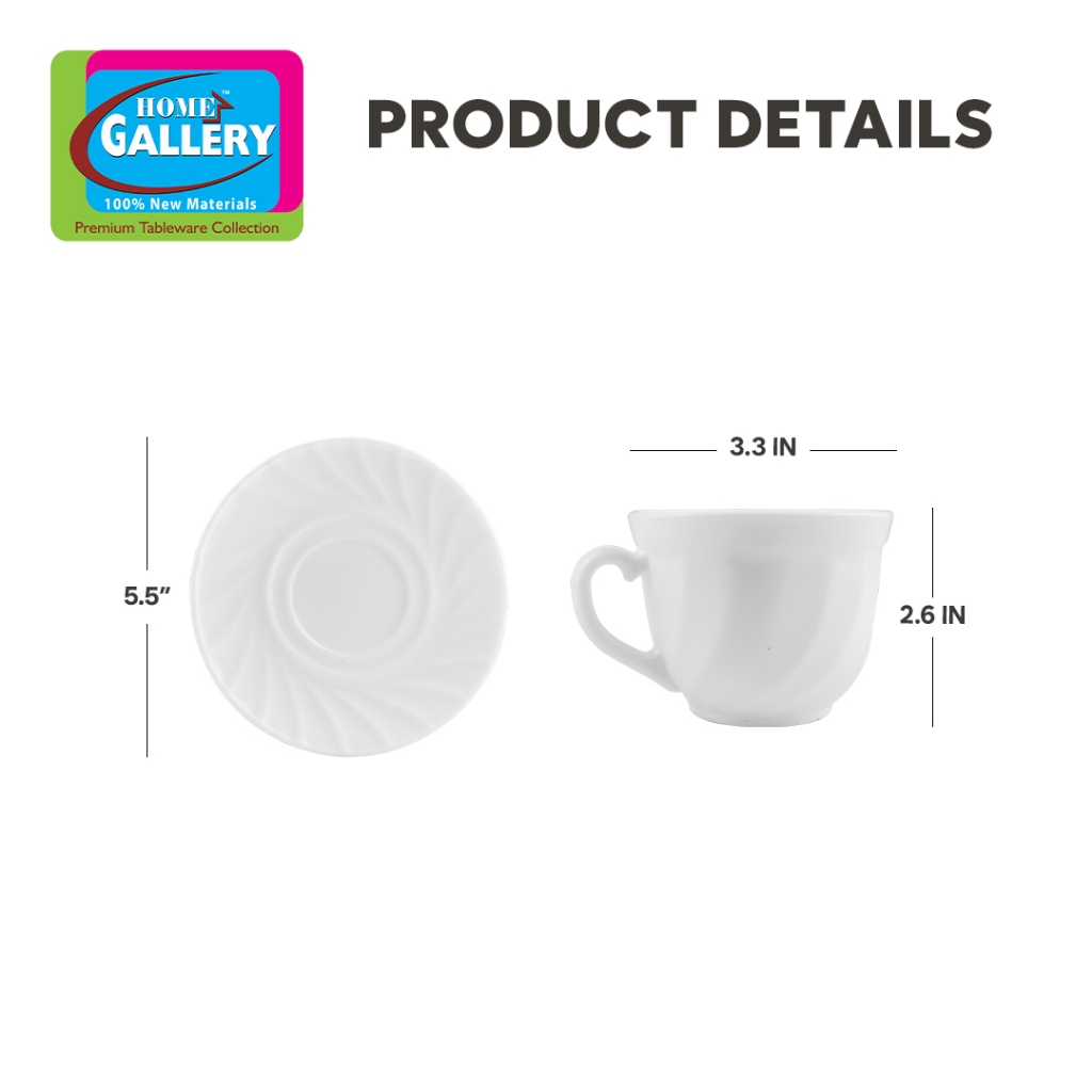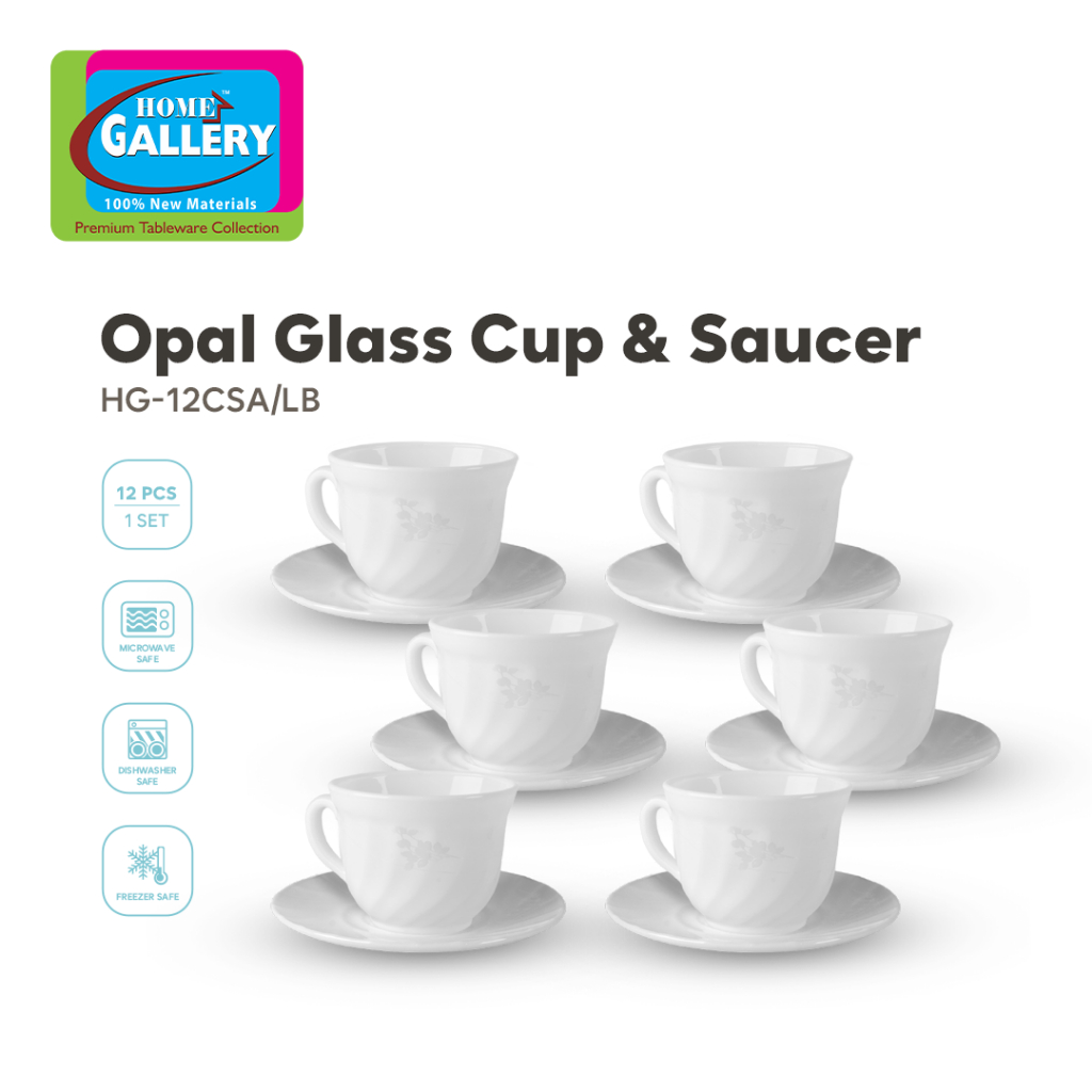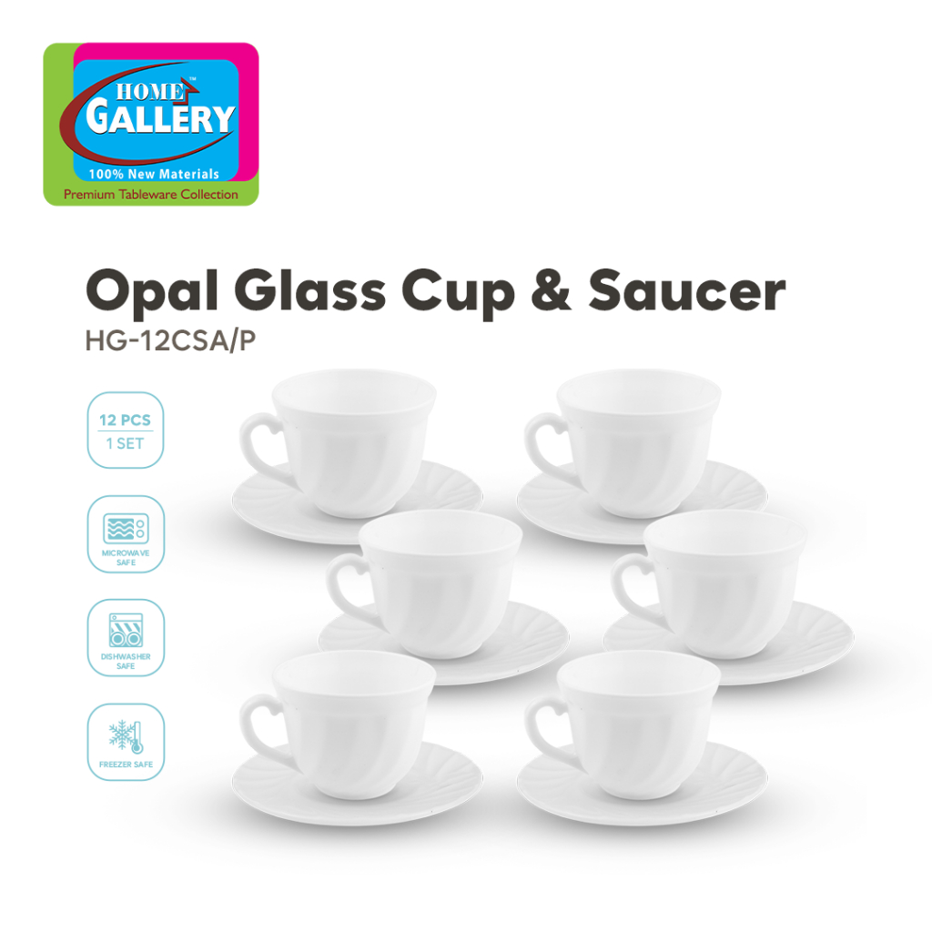 Home Gallery Opal Glass Cup and Saucer Set 12pcs 100% Food Grade Material BPA free