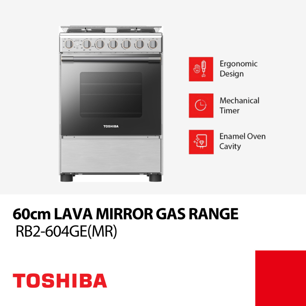 Toshiba 60cm Lava Mirror 4-Burner Gas Range