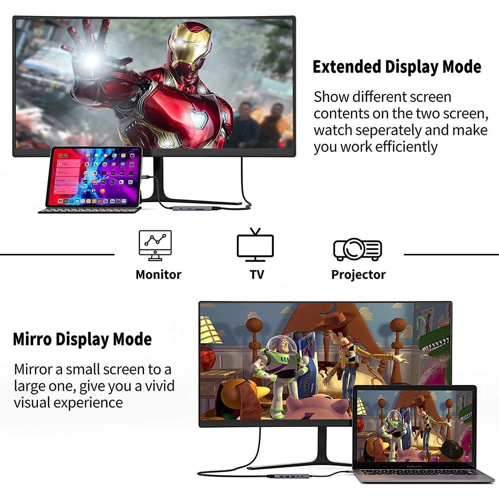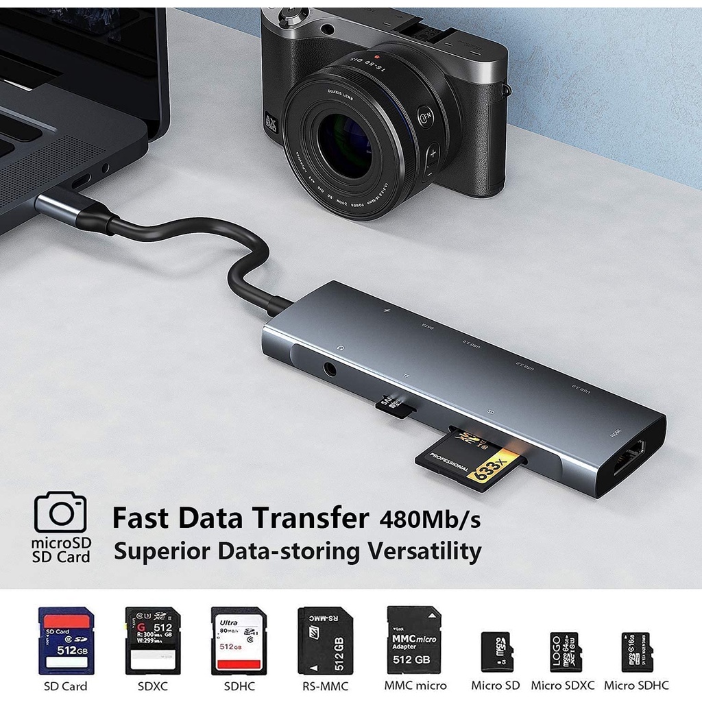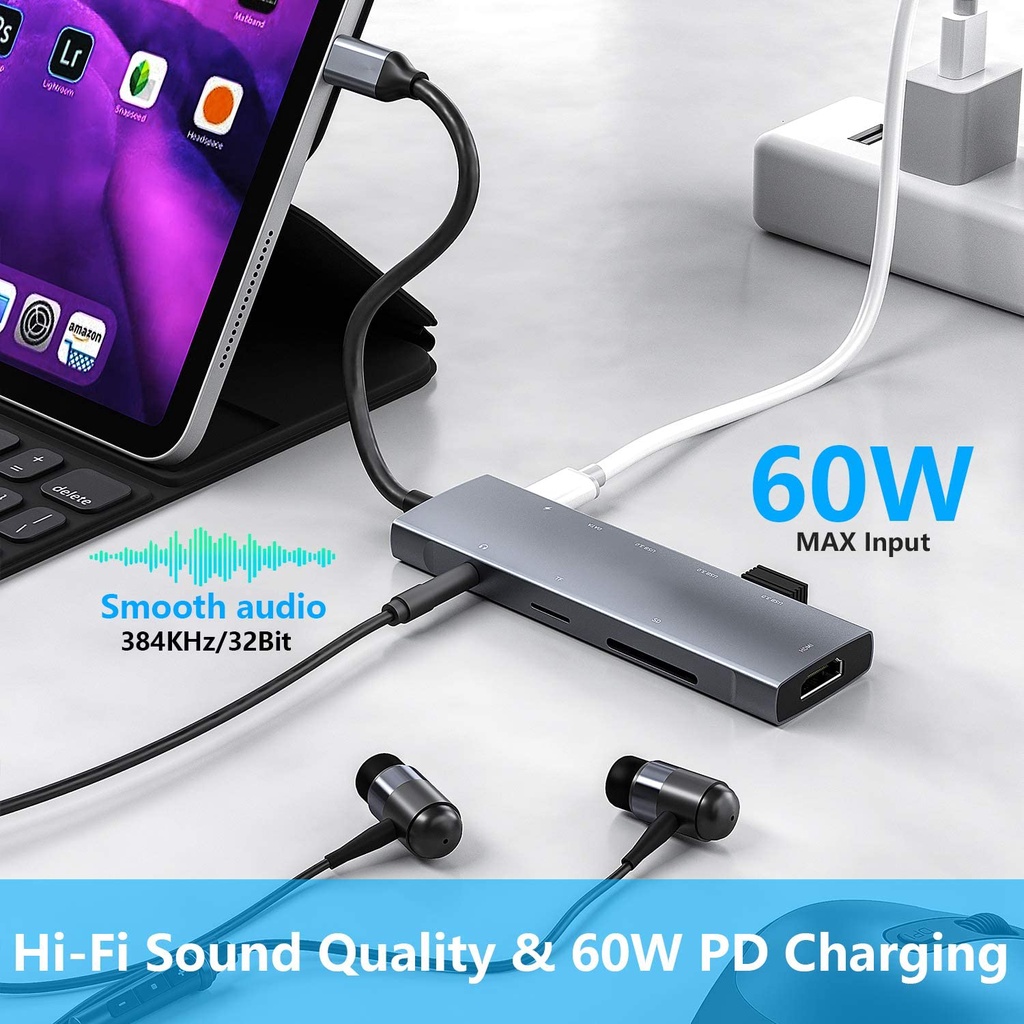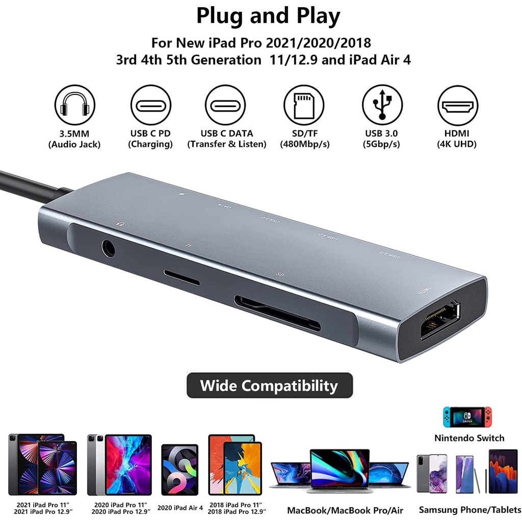 USB C HUB for iPad Pro 9-in-1 Adapter iPad Pro 2021 2020 2018 12.9 11 inch iPad Air 4 Docking Station with 4K HDMI USB-C PD Charging, SD/Micro Card Reader, USB 3.0, 3.5mm Headphone Jack Type C Data