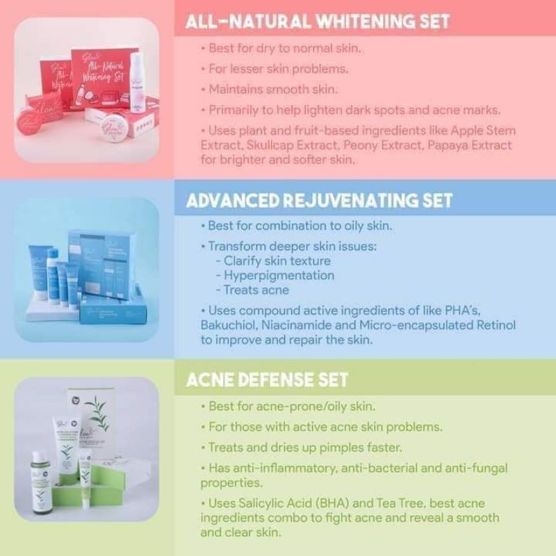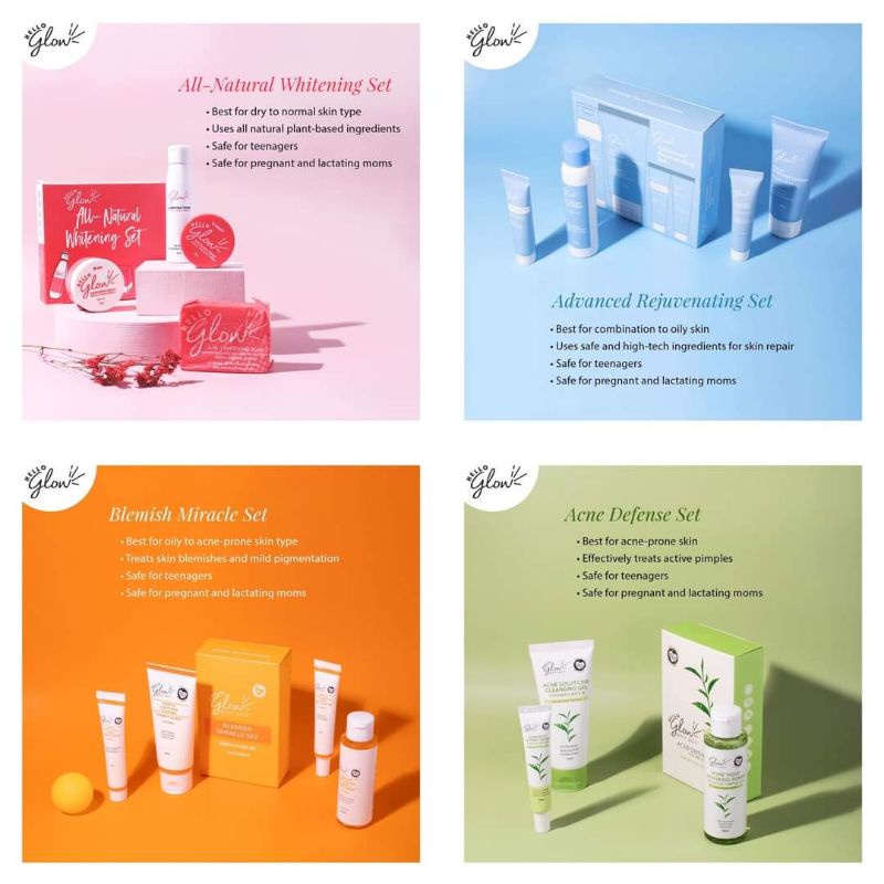HELLO GLOW BLEMISH MIRACLE SET/ ALL-NATURAL WHITENING SET/ ACNE DEFENSE SET/ ADVANCED REJUV SET ♥️