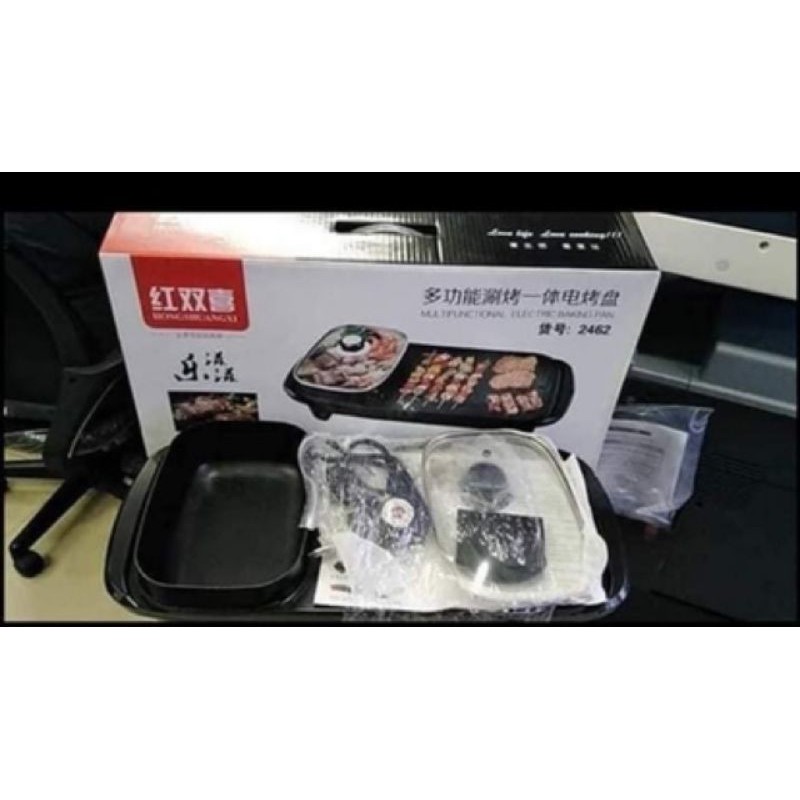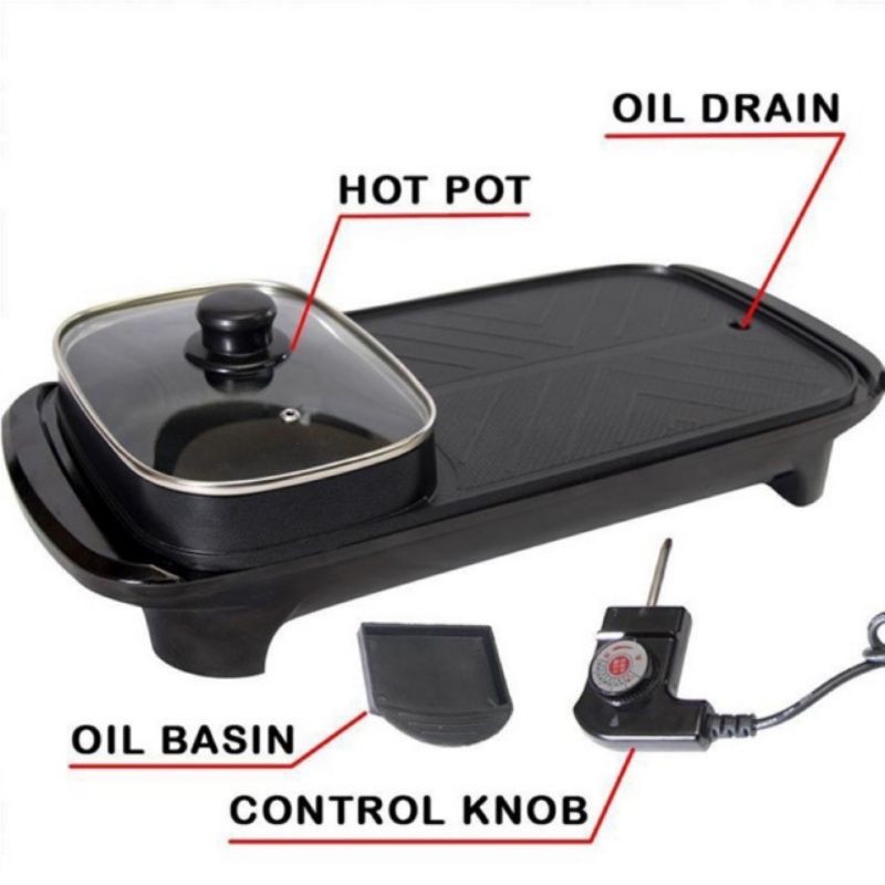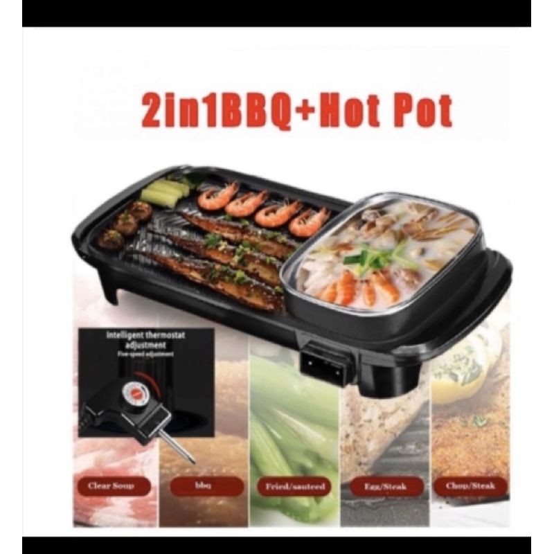 2in1 Electric Samgyupsal Grill + Hotpot for Shabu Shabu, Multifunctional Non-stick Grill Pan