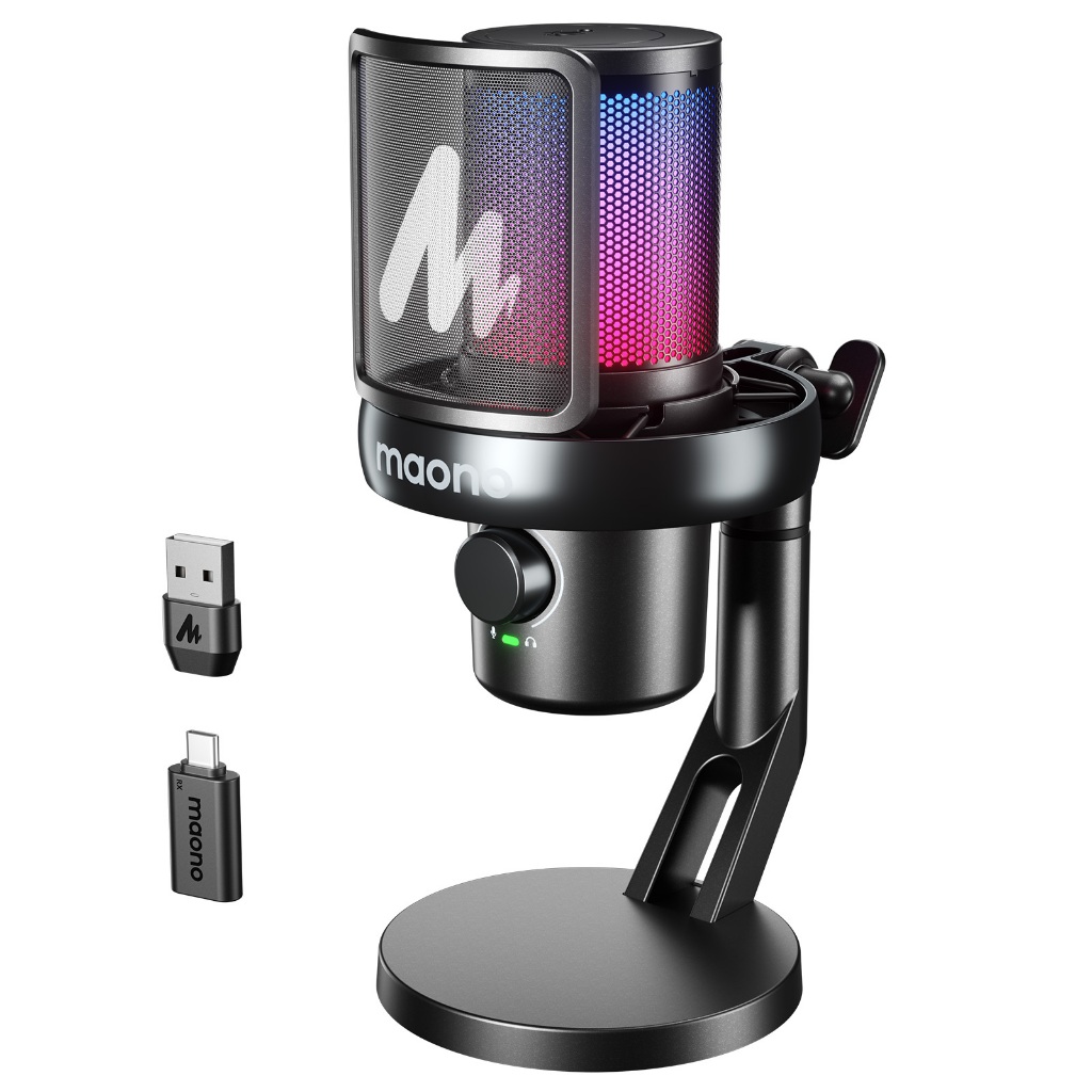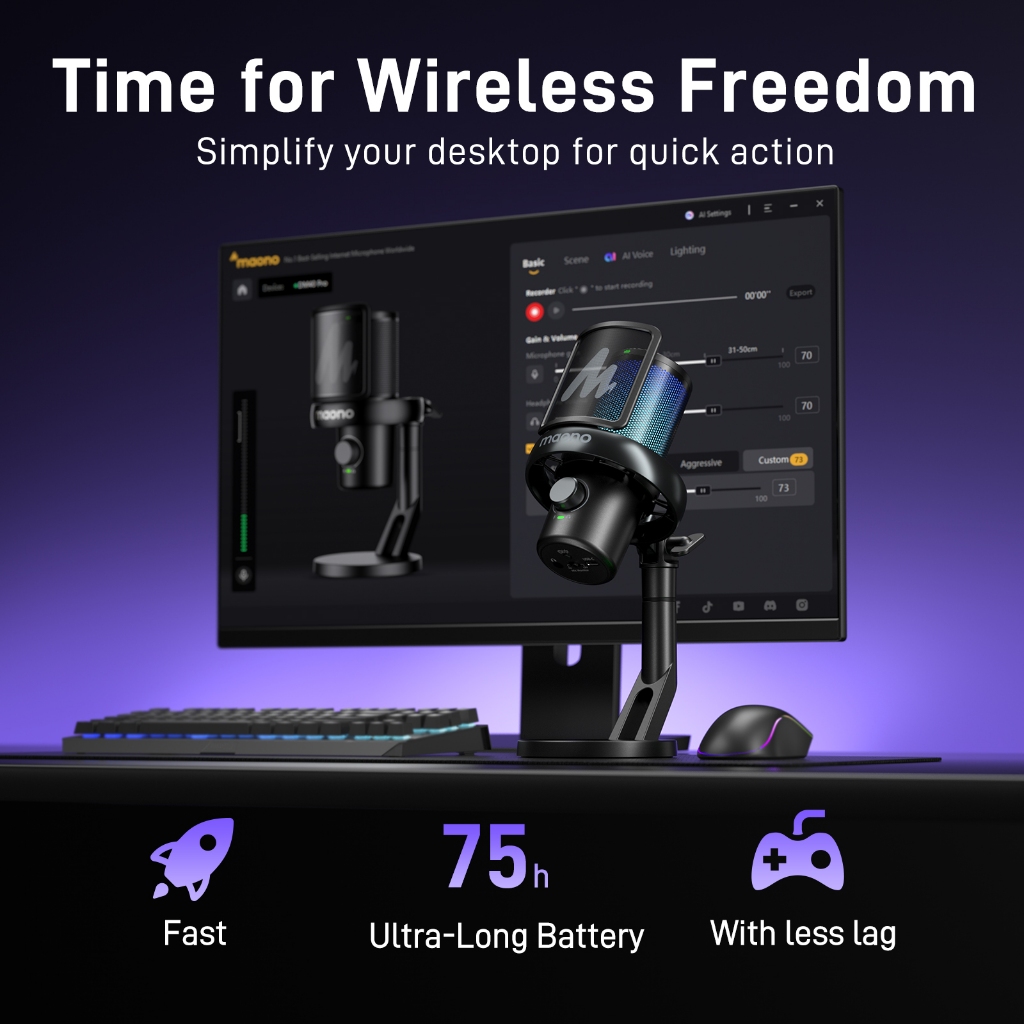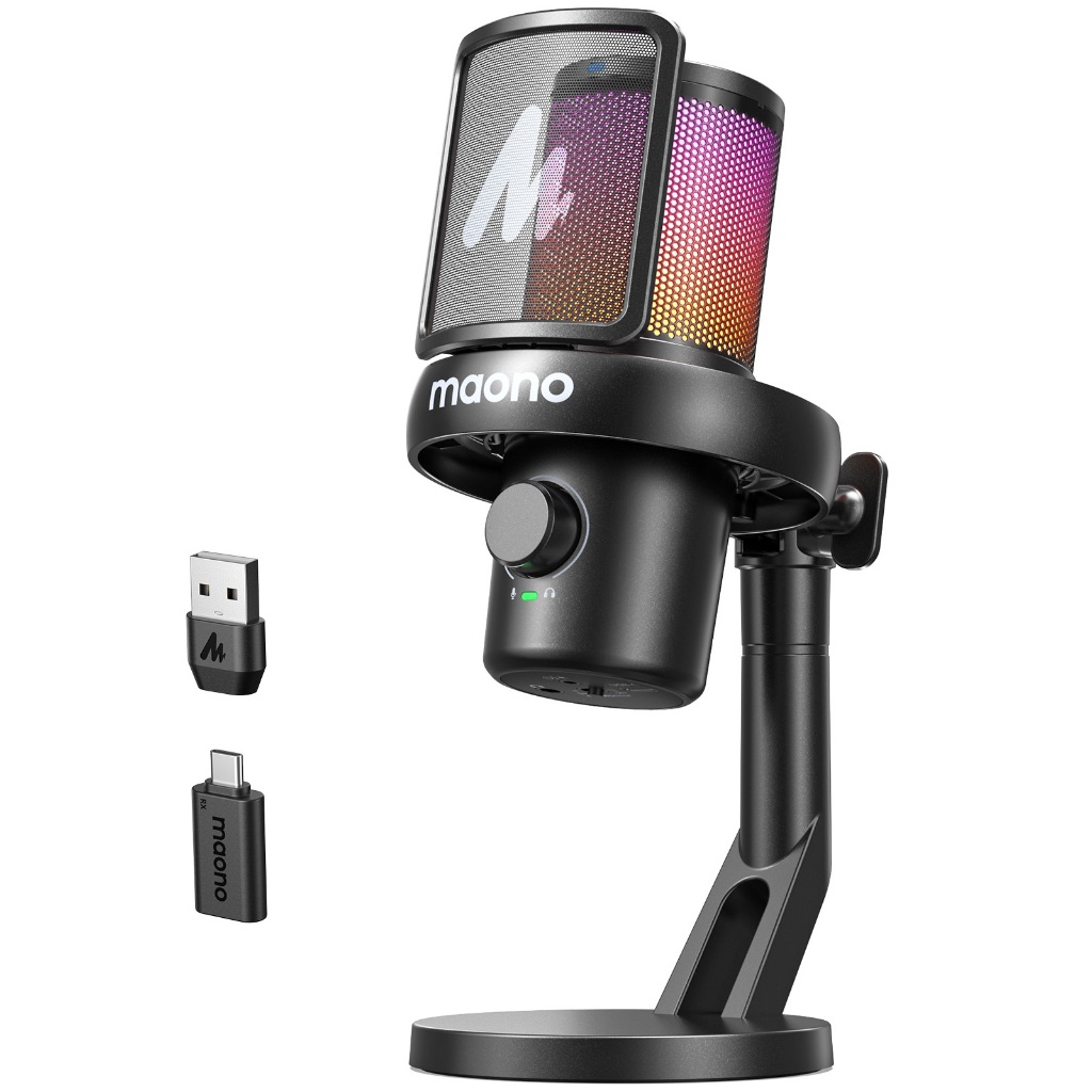 MAONO DM40 ProS Wireless Gaming Microphone Noise-Cancellation Microphone USB Mic with Software, AI Change Voice, Custom RGB Lights for Recording, Streaming, Gaming, Computer, PC PS5