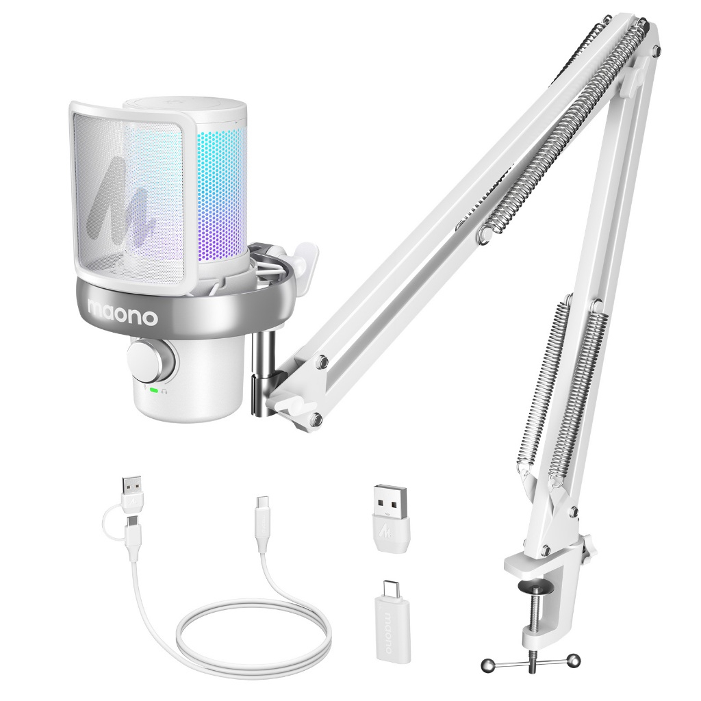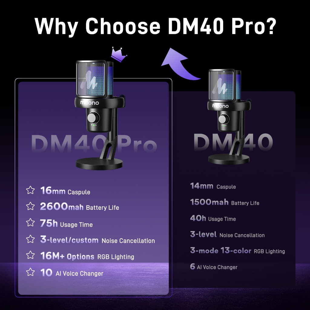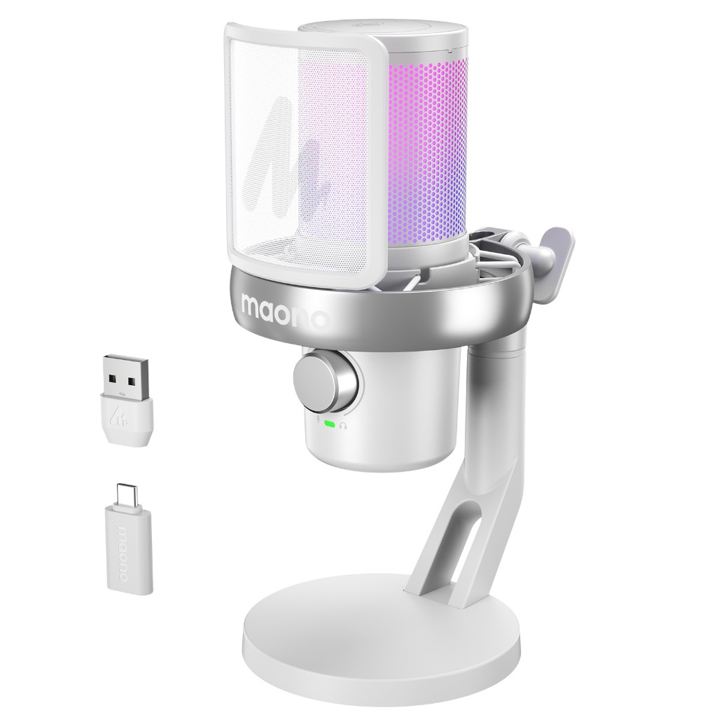 MAONO DM40 ProS Wireless Gaming Microphone Noise-Cancellation Microphone USB Mic with Software, AI Change Voice, Custom RGB Lights for Recording, Streaming, Gaming, Computer, PC PS5