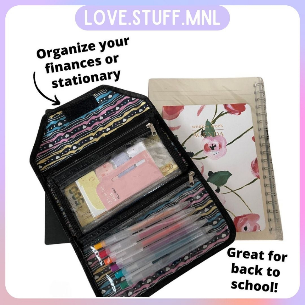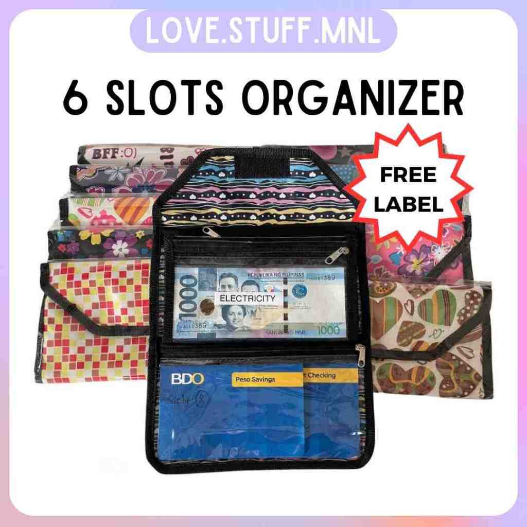 6 ZIPPER SLOTS FLIP TYPE MONEY BILLS BUDGET ORGANIZER PRINTED DESIGN with free label