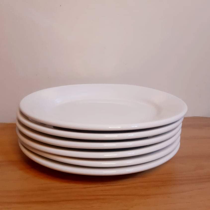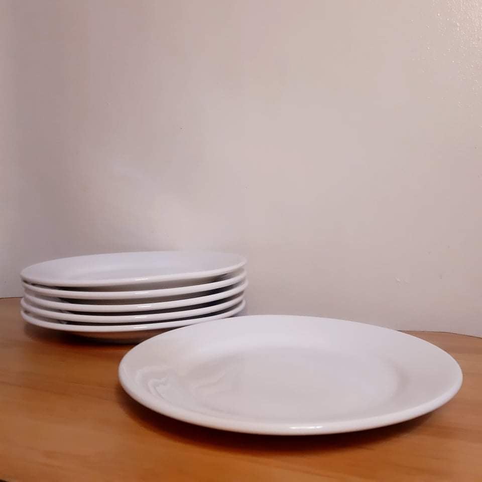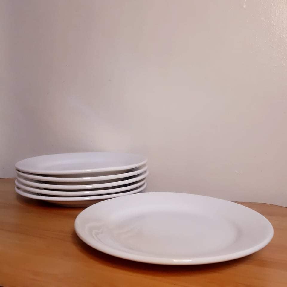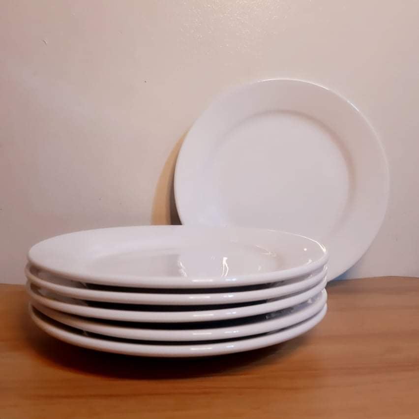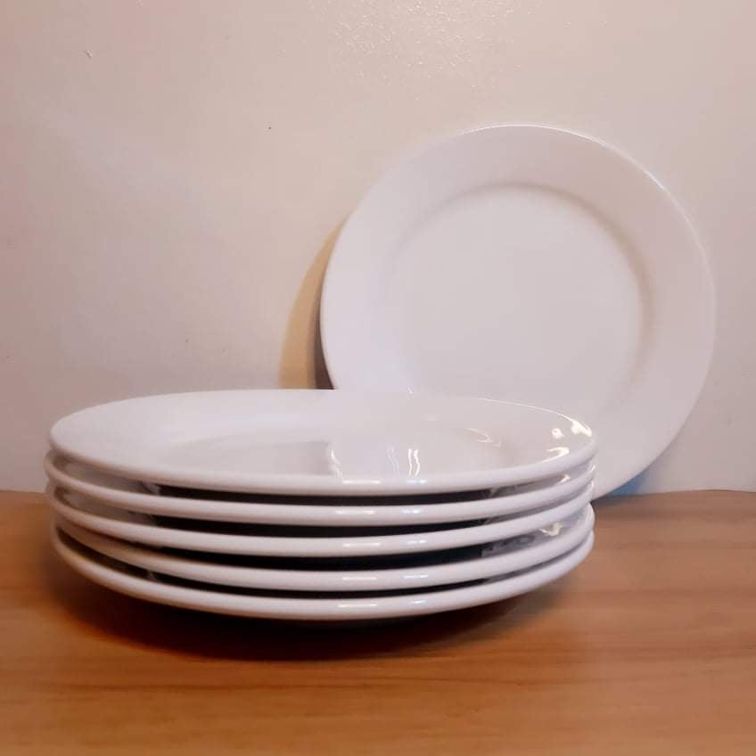 6 pcs 8 Inch Ceramic Dinner Plates, Rounded, White Salad Plates for Lunch, Pizza, Buffet, Steak